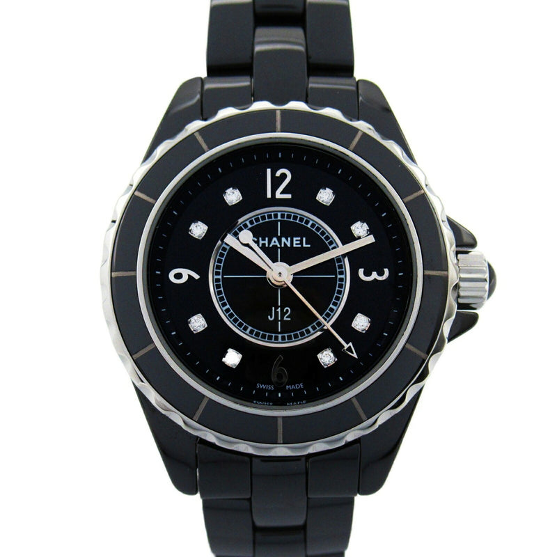 Pre-Owned CHANEL J12 8P Diamond Watch, Ceramic, Women's, Black, H2569
