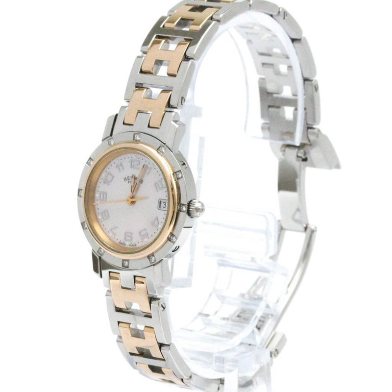 Pre-Owned HERMES Clipper Diamond Pink MOP Dial Quartz Watch CL4.222 Polished