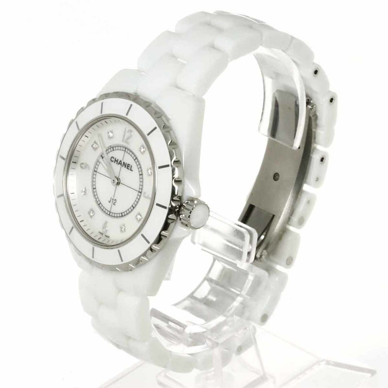 Pre-Owned CHANEL J12 33mm H1628 Women's Watch with 12 Diamonds, Date Display, White Ceramic Quartz Movement