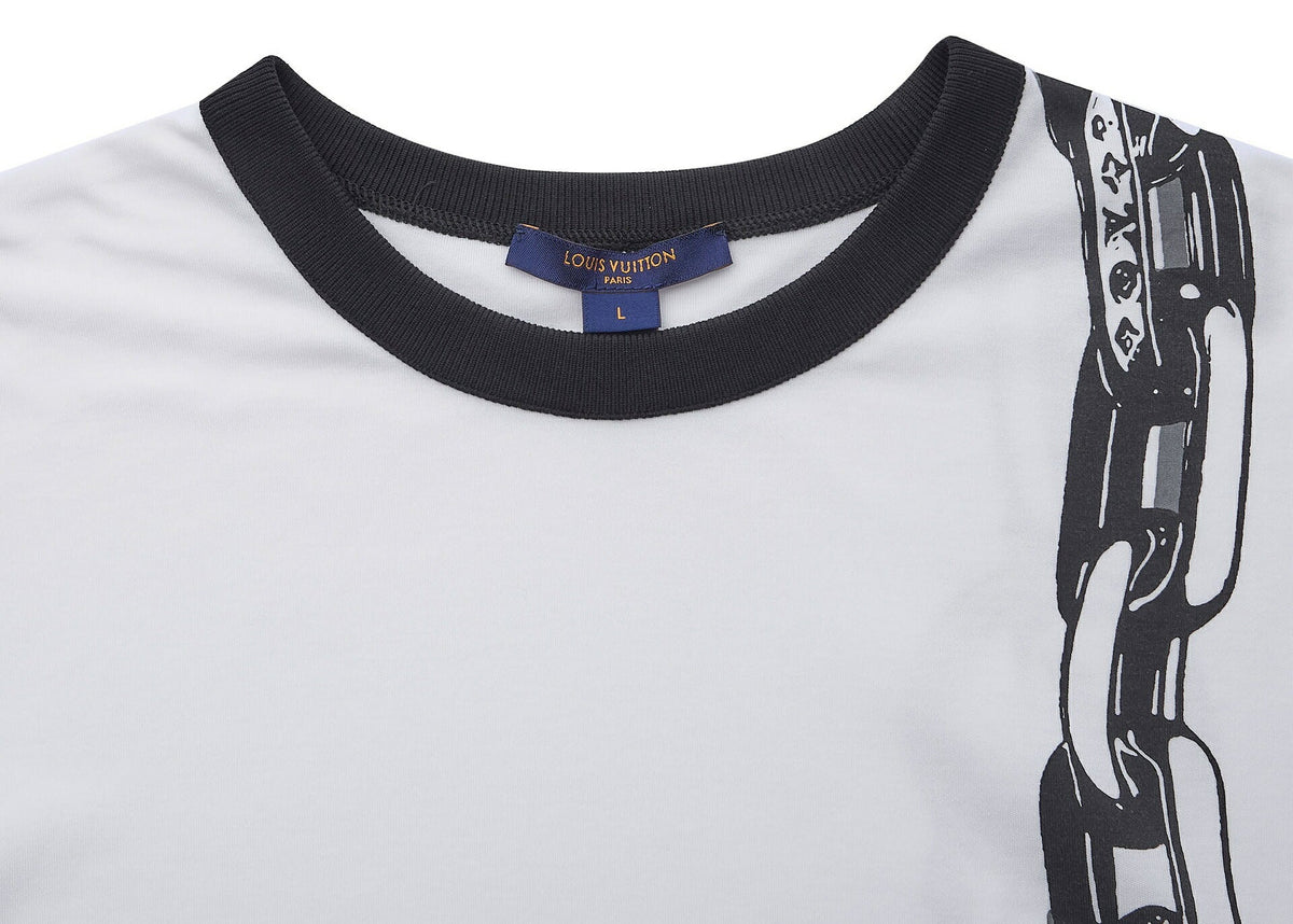 Designed in a stunning combination of White and Black, this T-shirt features the iconic Louis Vuitton Monogram Chain Design, showcasing your sophisticated taste. Its cut-and-sew construction not only enhances durability but also provides a unique style that stands out in any setting.