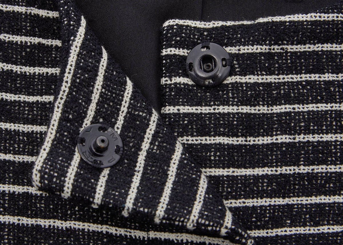Crafted from a premium blend of Cotton, Wool, and Nylon, this jacket not only ensures comfort but also provides warmth during the cooler months. The elegant Camellia border design adds a touch of sophistication, while the classic black and white color combination makes it versatile for various occasions.