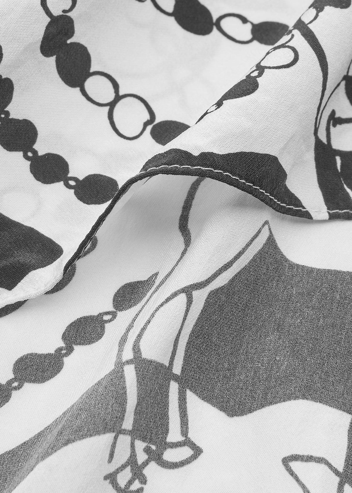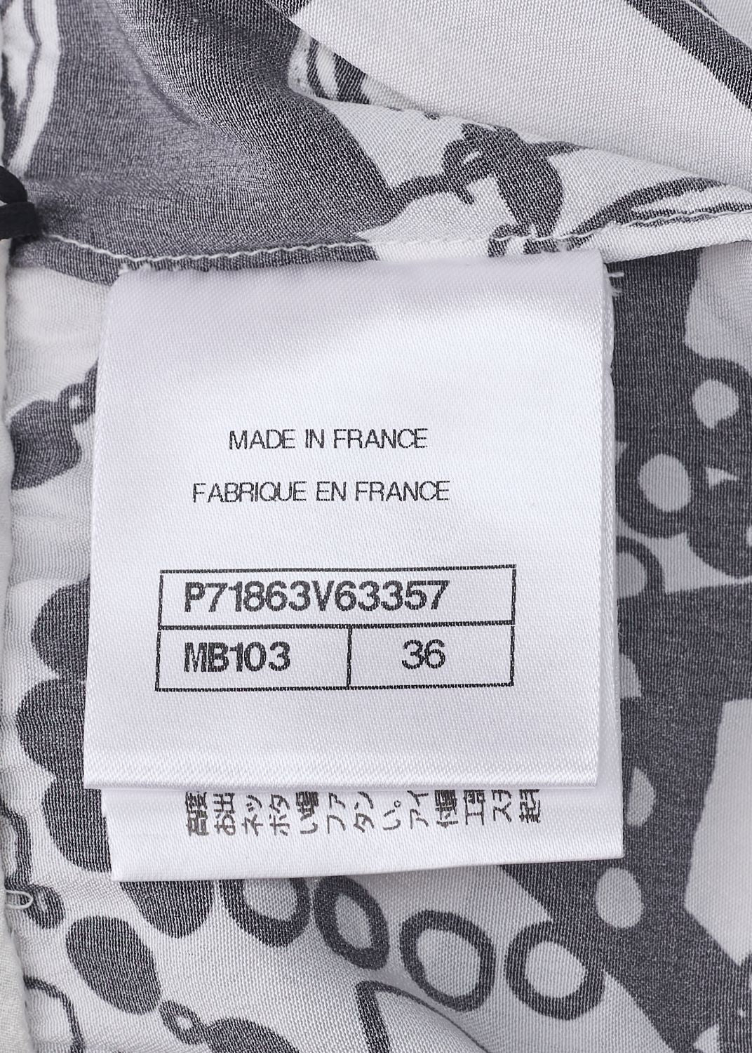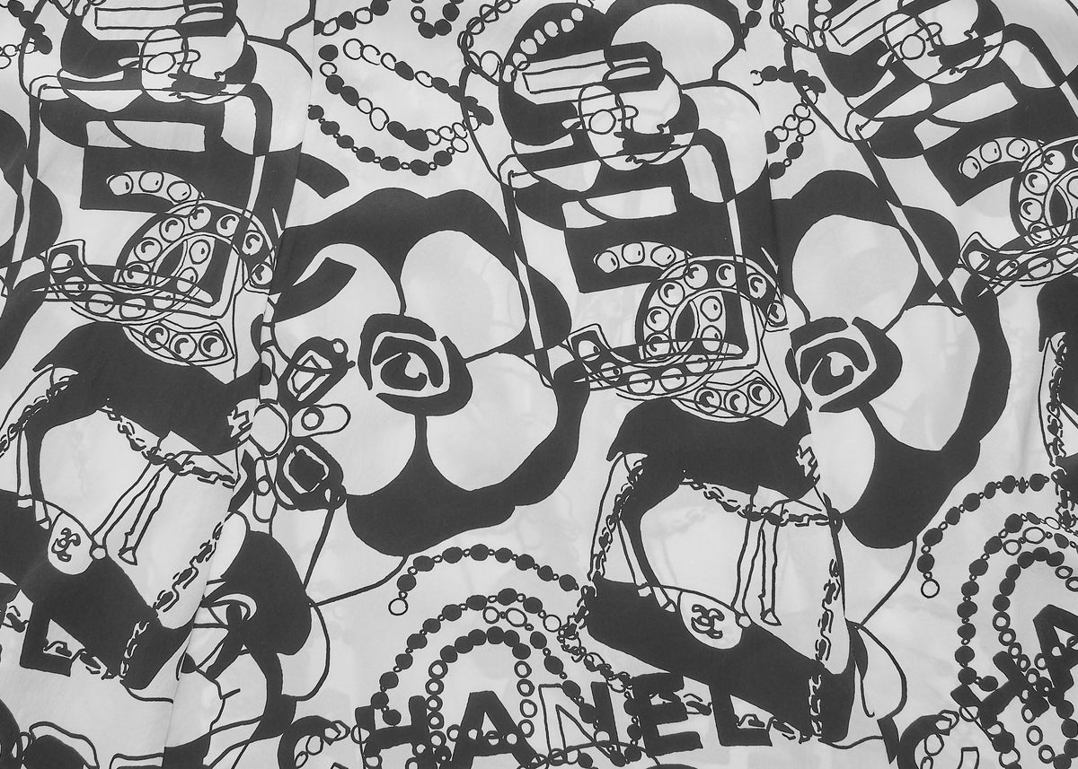 Elevate your wardrobe with the stunning CHANEL Camellia Coco Mark Logo Skirt 36 Black & White. This exquisite long skirt showcases the iconic CHANEL Camellia logo, a symbol of timeless elegance and luxury. Crafted from 100% silk, it offers a soft, flowing silhouette that beautifully drapes around your figure.