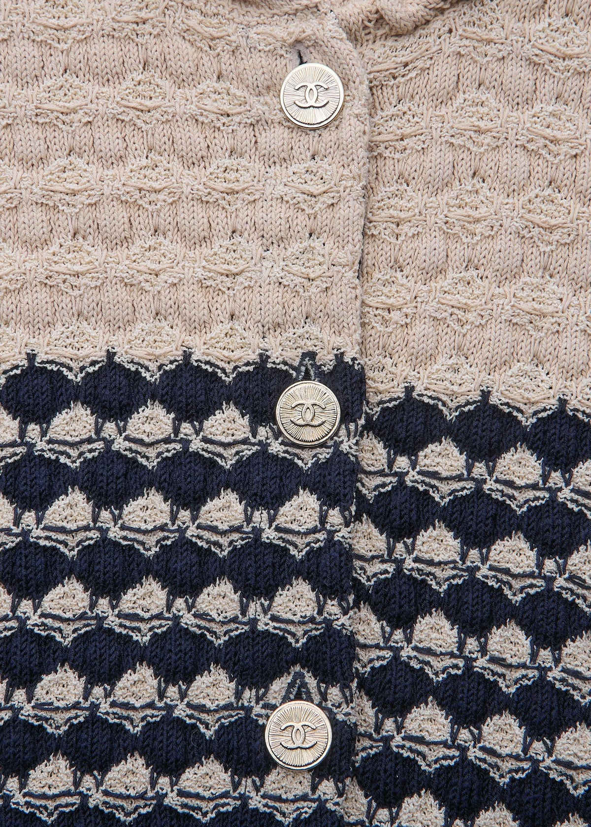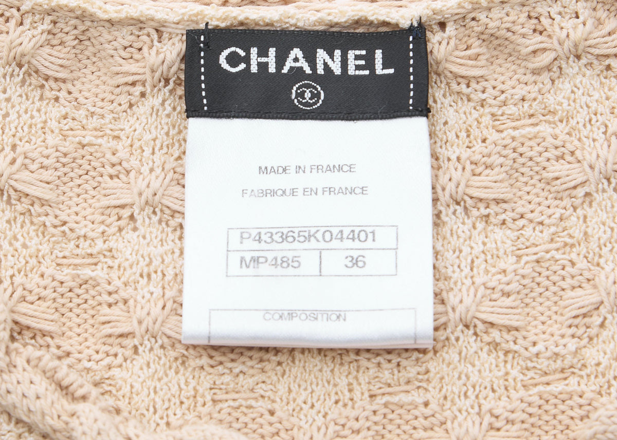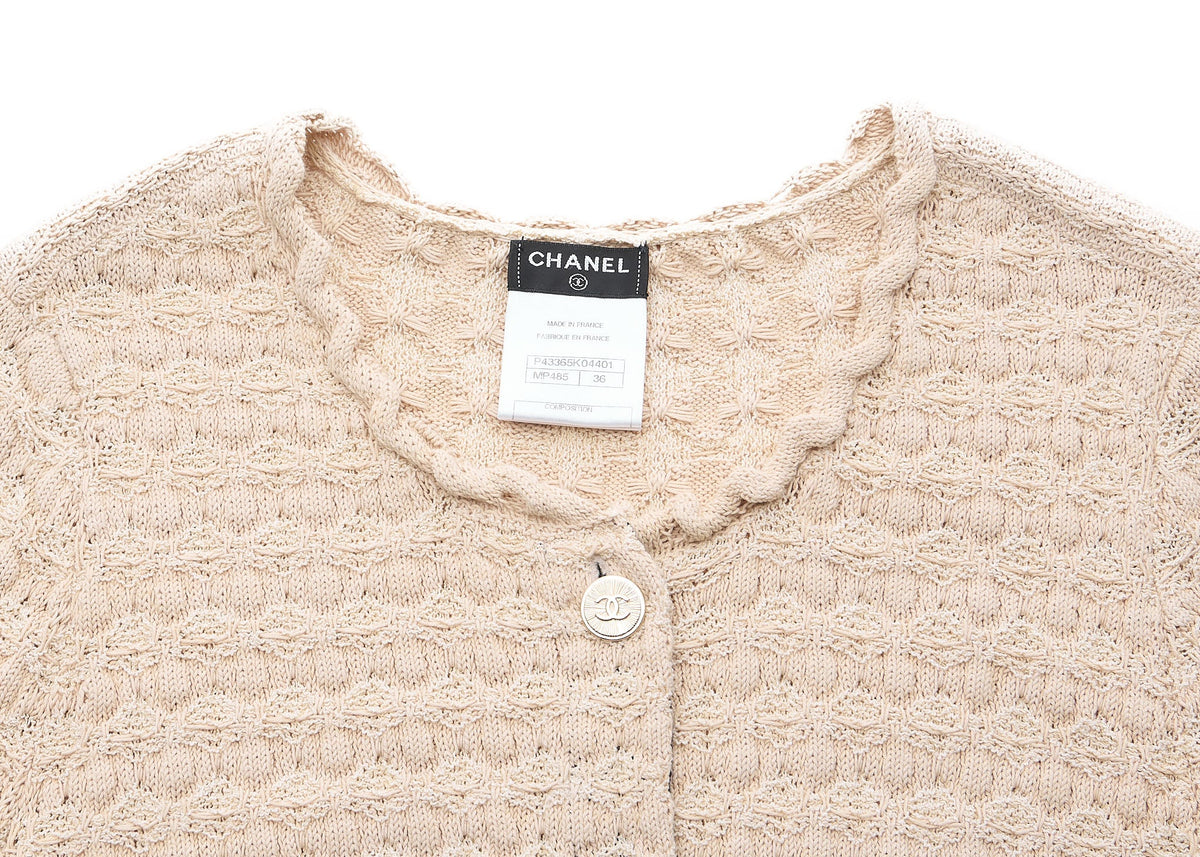 Pre-Owned Cardigan, Coco Button, Knit, Rayon Blend, Beige, Gold-Tone Hardware, Pre-Owned