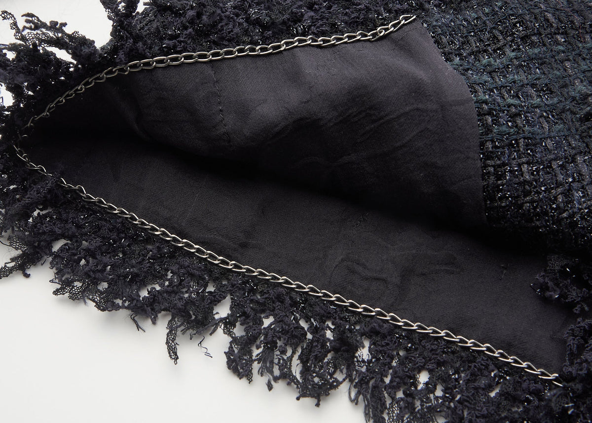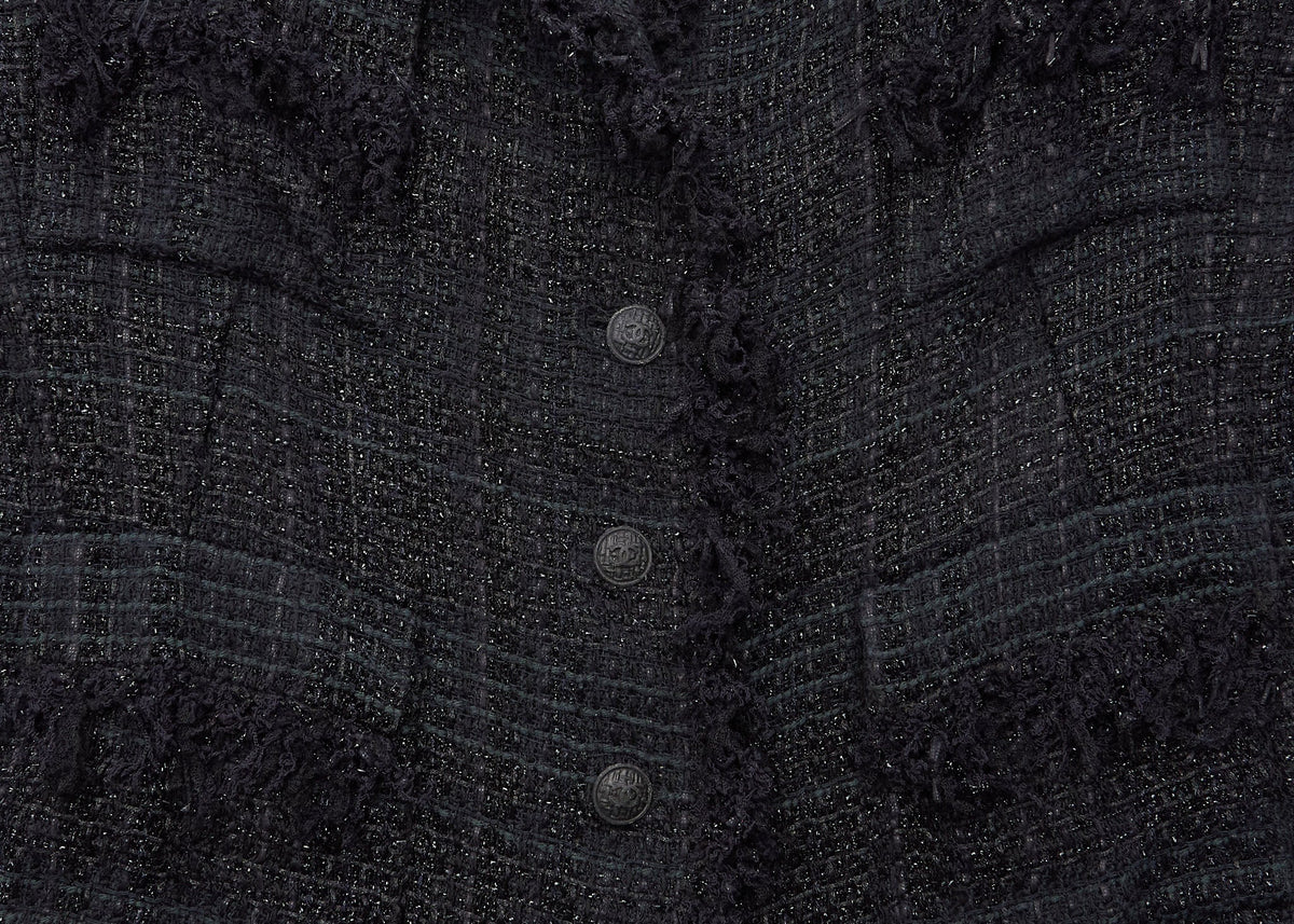 Pre-Owned Jacket, Coco Button, Long Sleeve, Cut-and-Sew, Fabric, Black Green, Gold-Tone Hardware, Pre-Owned