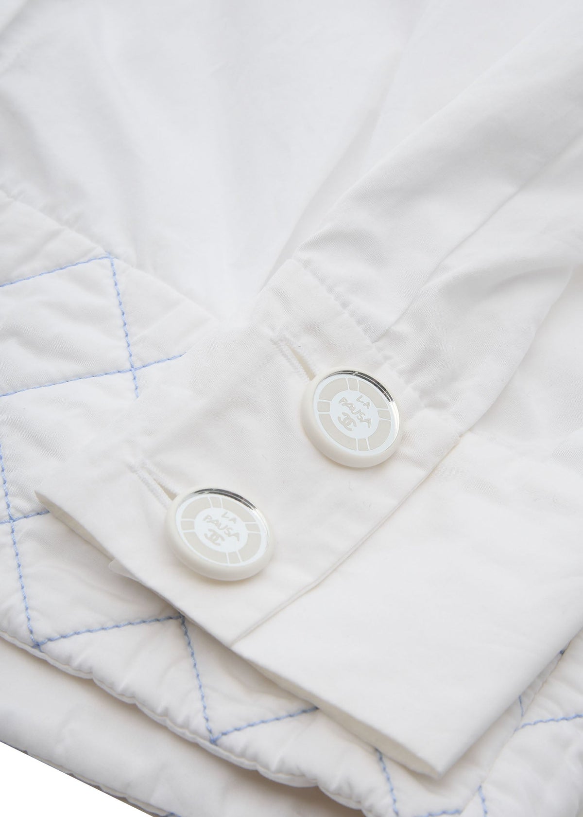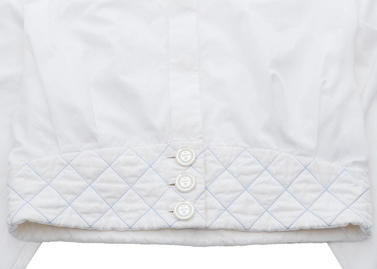 Pre-Owned Cropped Blouse, Coco Button, Cotton, White, Silver-Tone Hardware, Pre-Owned