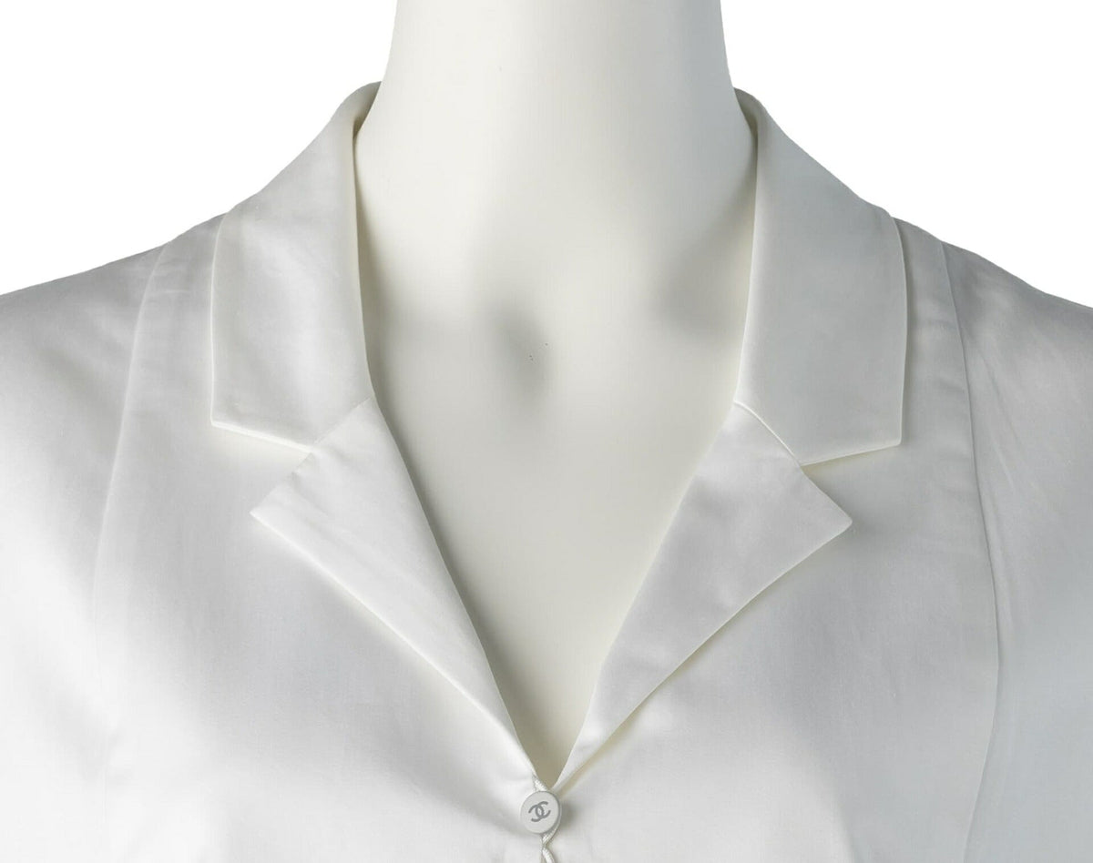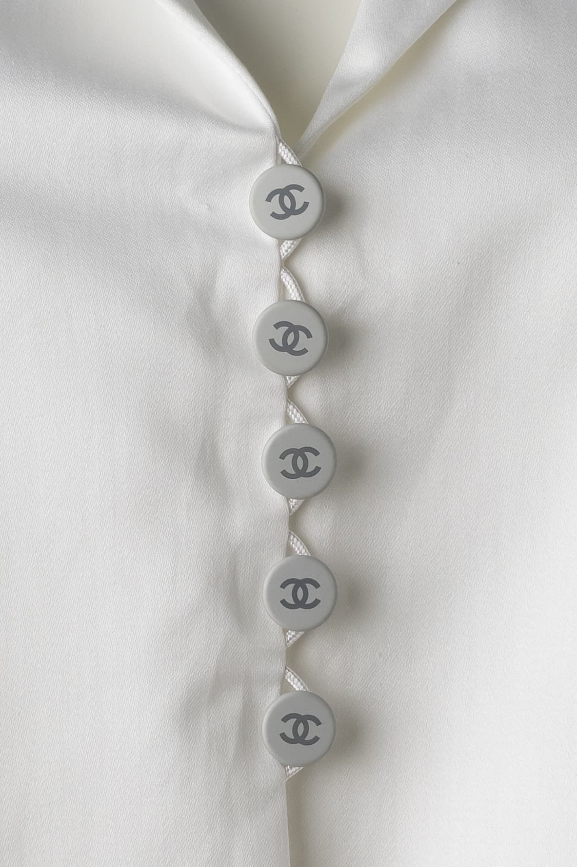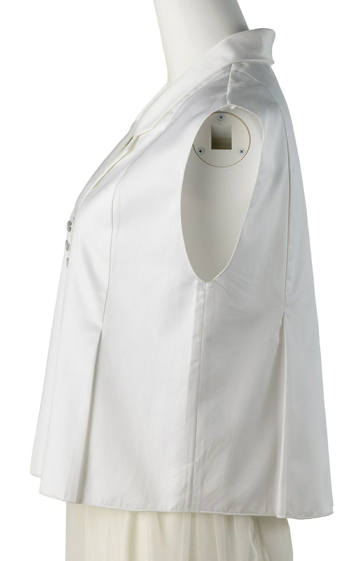Pre-Owned Sleeveless Shirt Vest, Coco Button, Cotton, White, Gold-Tone Hardware, Pre-Owned