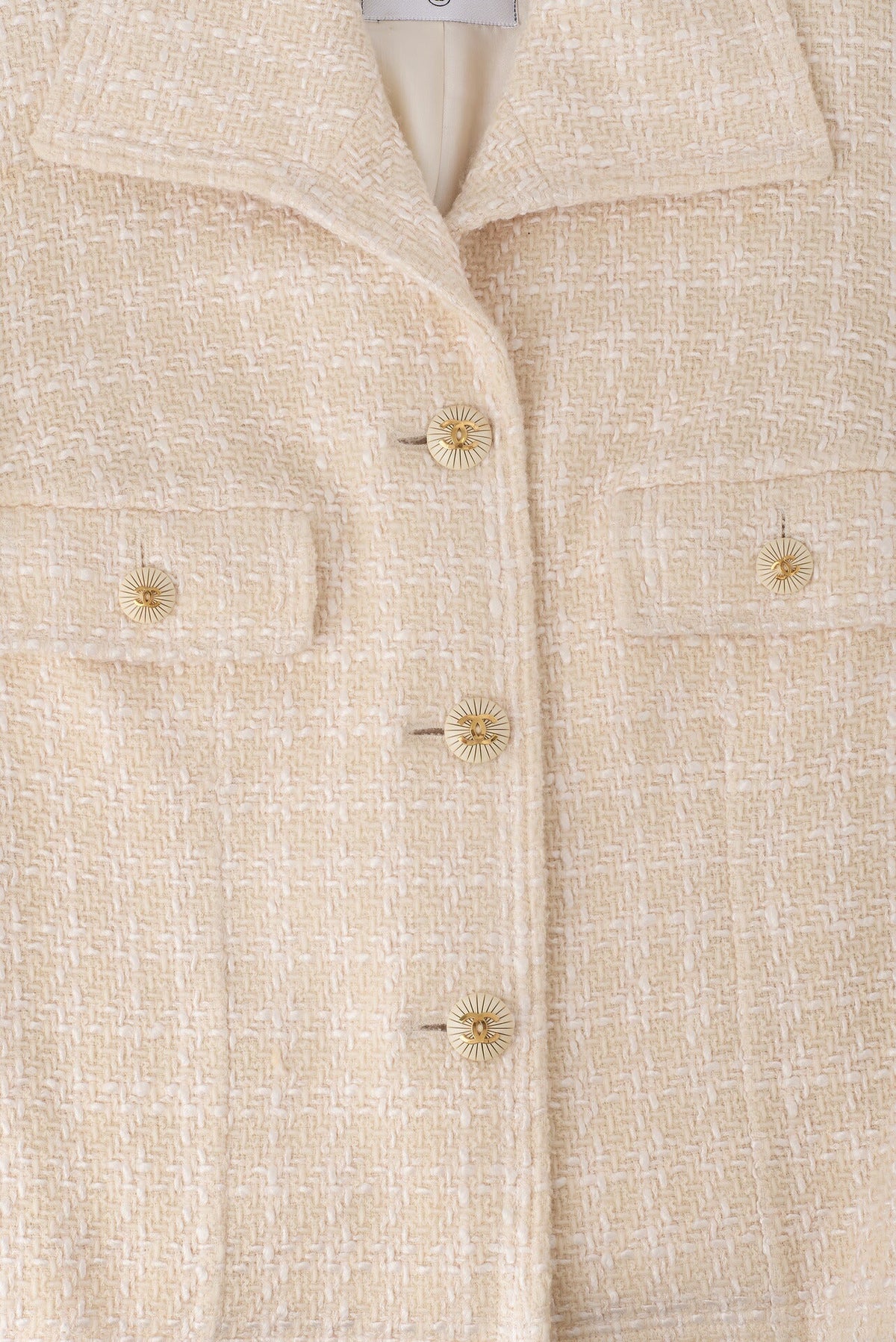 Pre-Owned Jacket Coat, Coco Button, Tweed, Beige, Gold-Tone Hardware, Pre-Owned