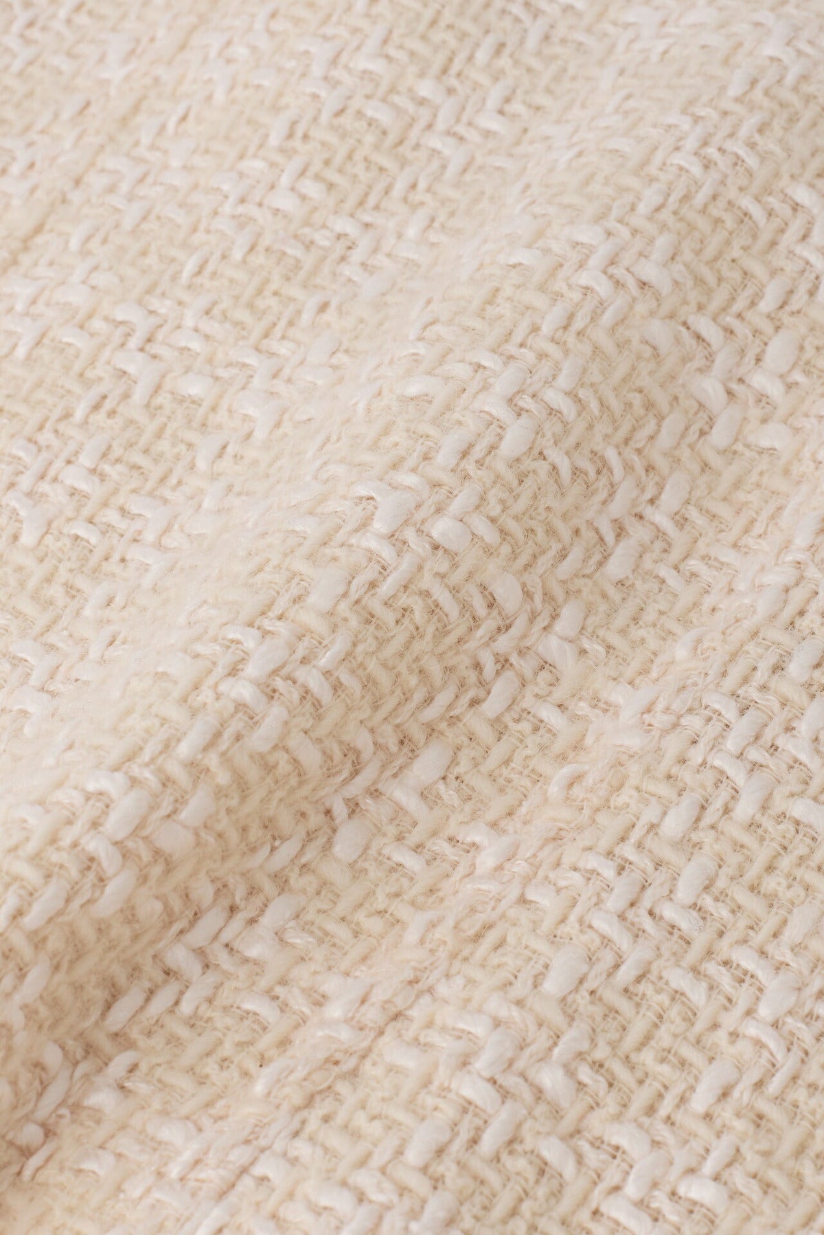 Crafted from high-quality tweed, this jacket not only offers style but also unparalleled comfort. With long sleeves that provide warmth and flexibility, it’s perfect for transitioning between seasons. The distinctive button detailing adds a touch of chic flair, making it a versatile piece for both casual and formal occasions.