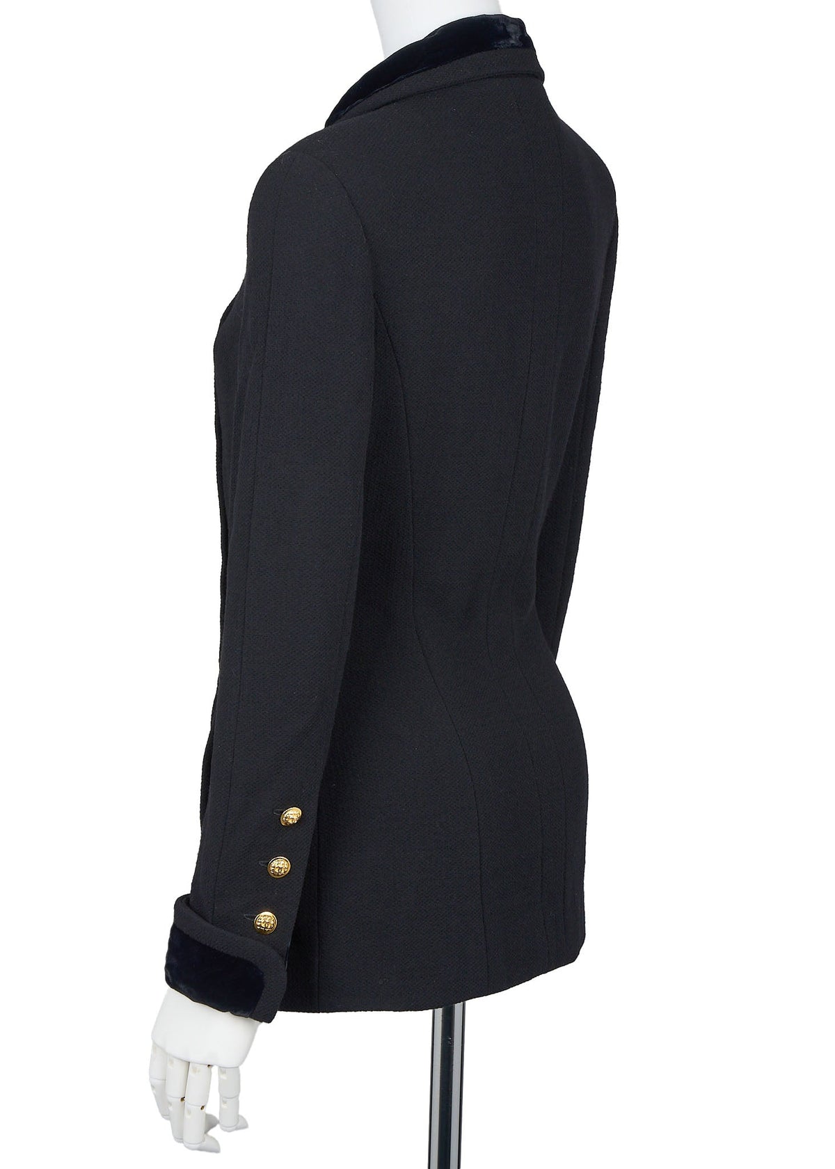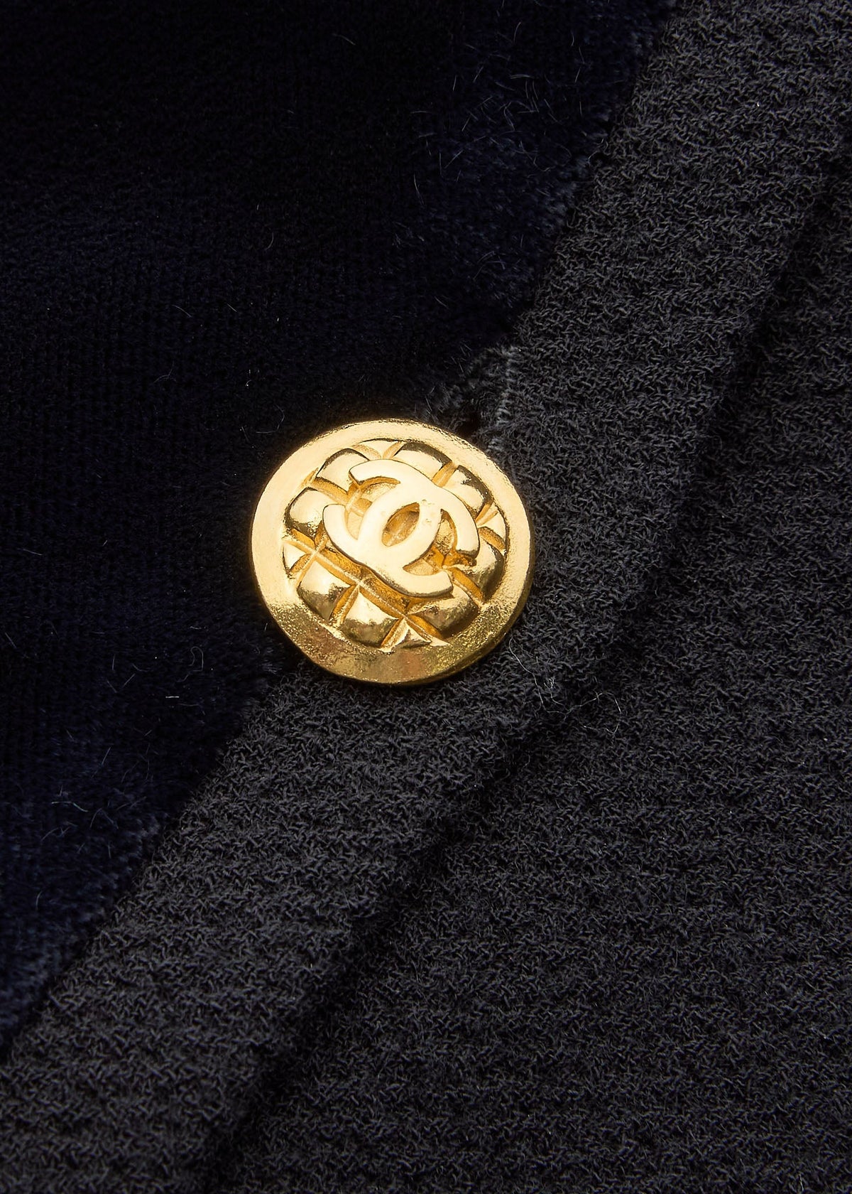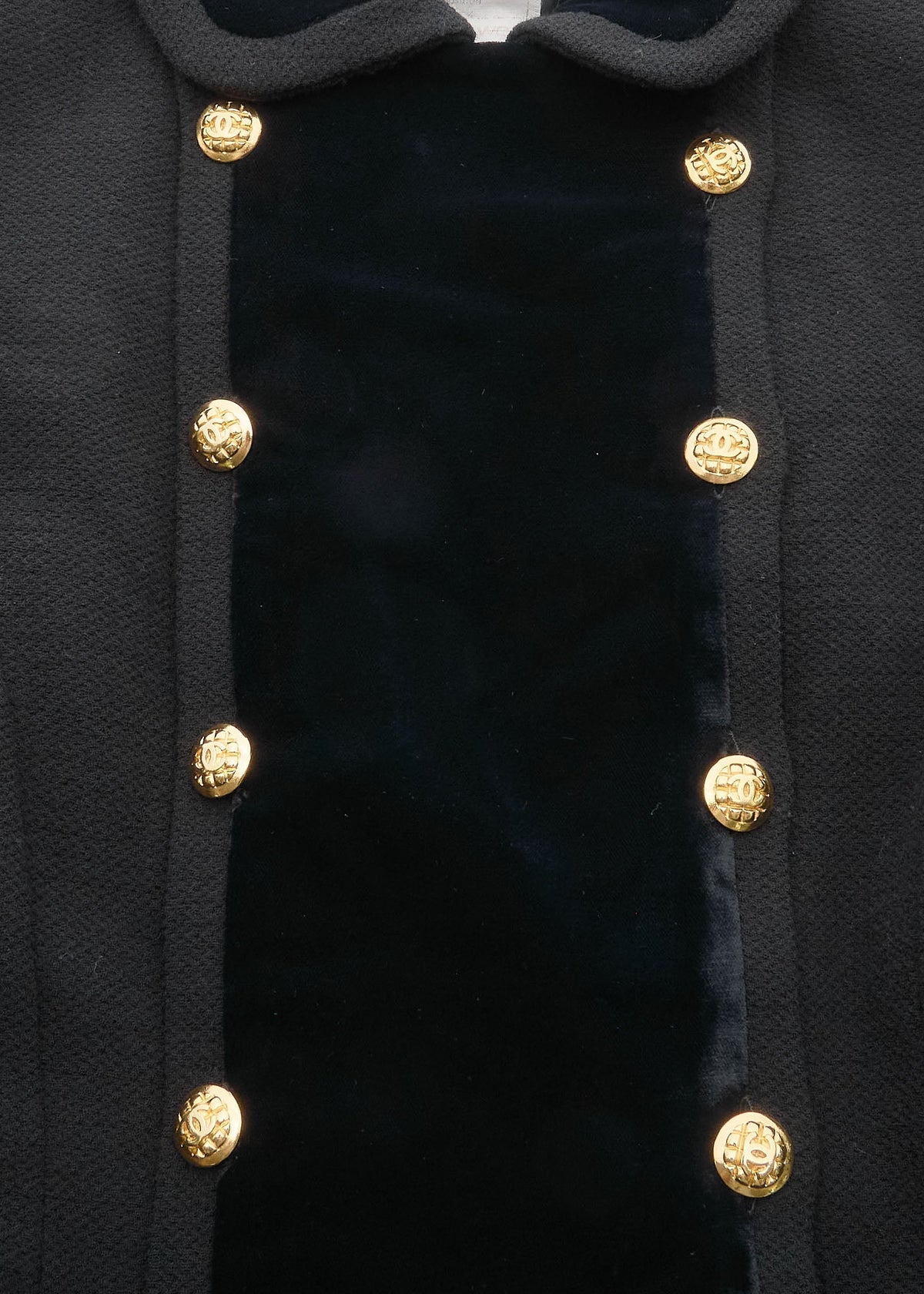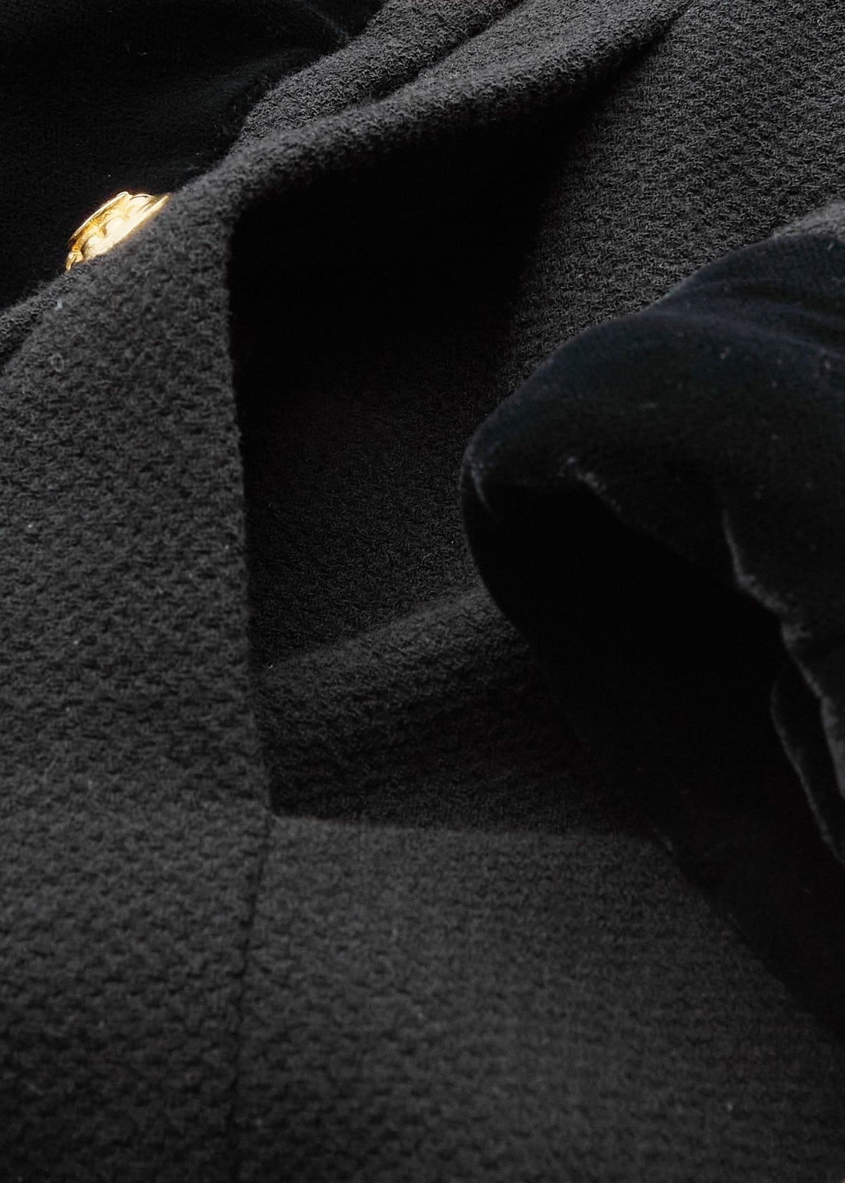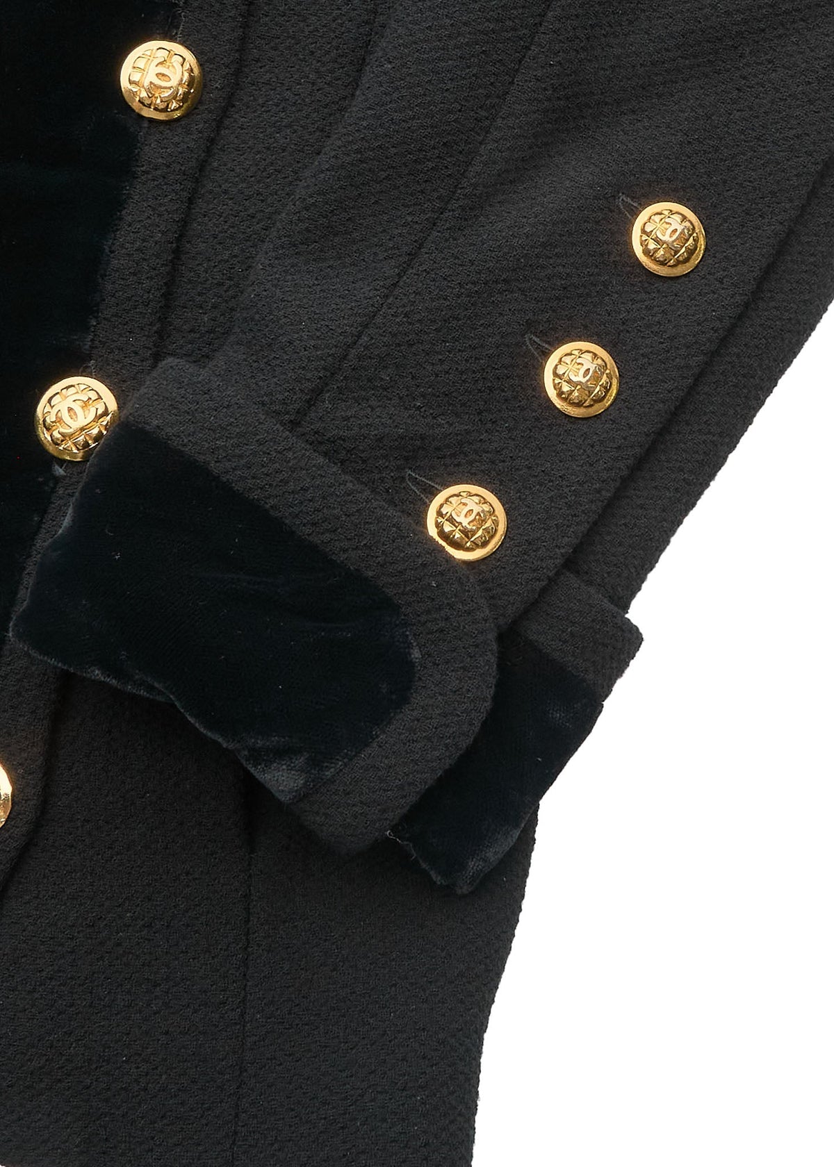 Pre-Owned Outerwear Coat, Coco Button, Tweed Velvet, Black, Gold-Tone Hardware, Pre-Owned