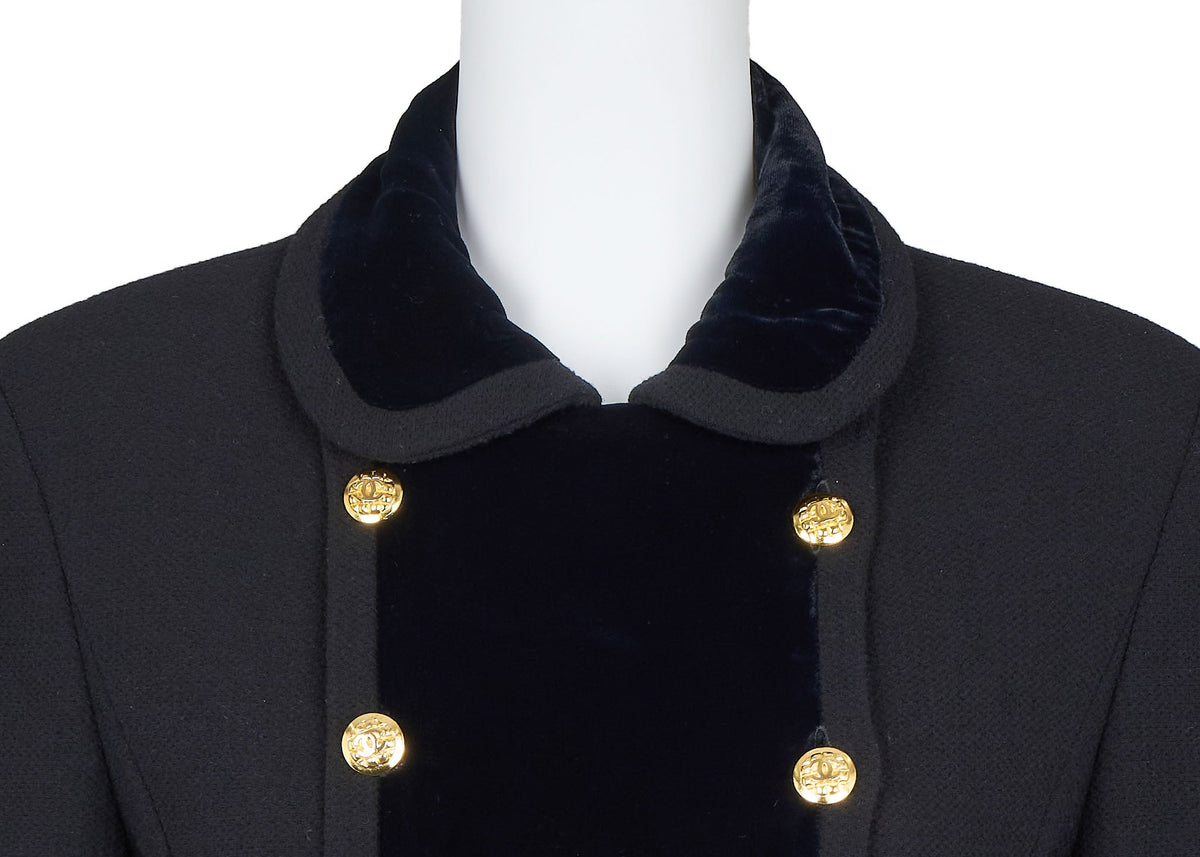 Whether you're heading to a business meeting or a night out, the CHANEL Coco Button Tweed Velvet Switching Jacket is designed to make you stand out. Don't miss the opportunity to enhance your style with this timeless outerwear piece.
