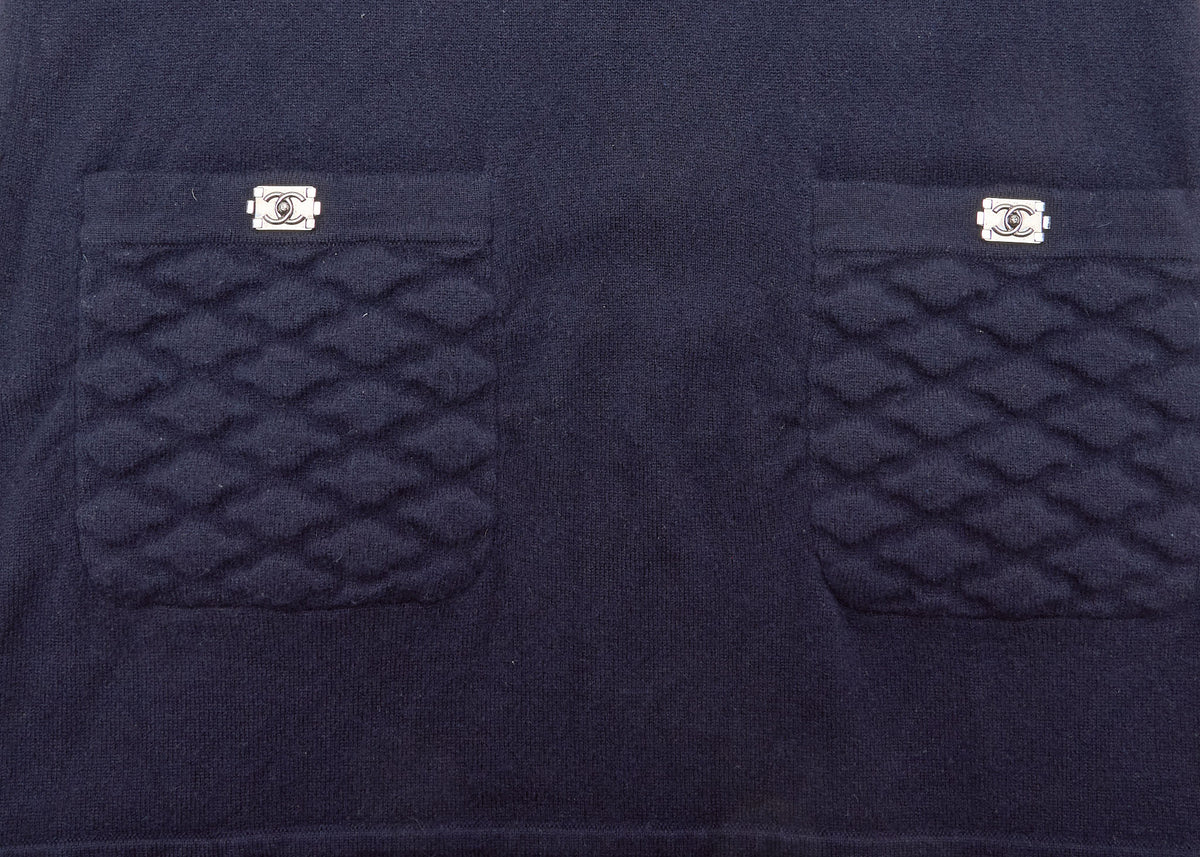 Discover the elegance of the CHANEL Coco Mark Cashmere Dress 36 in a classic navy hue, designed to enhance your wardrobe with luxurious comfort and timeless style. This exquisite piece is not just a dress; it's an investment in quality and sophistication.