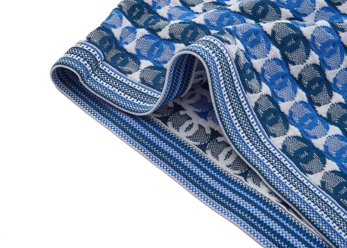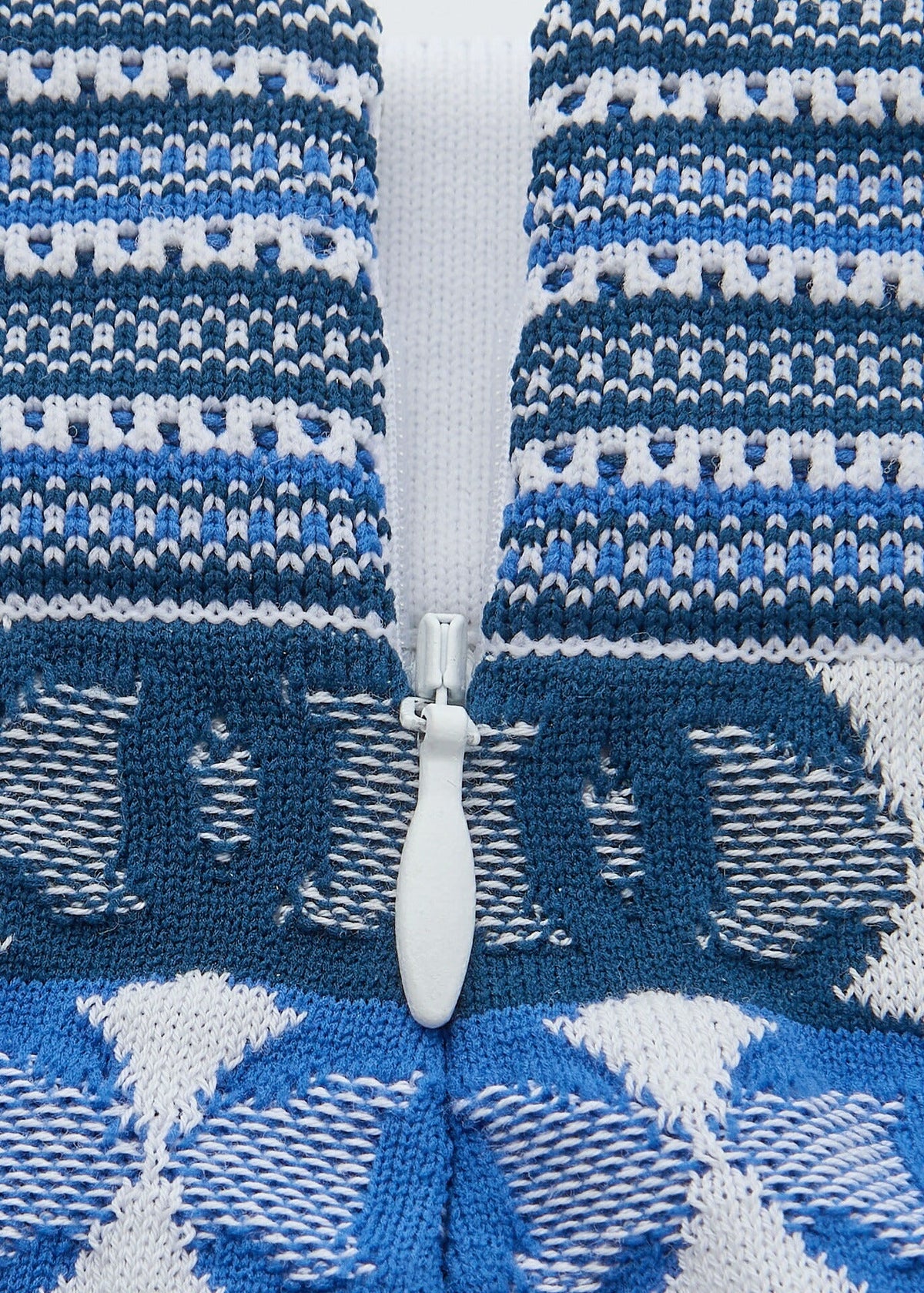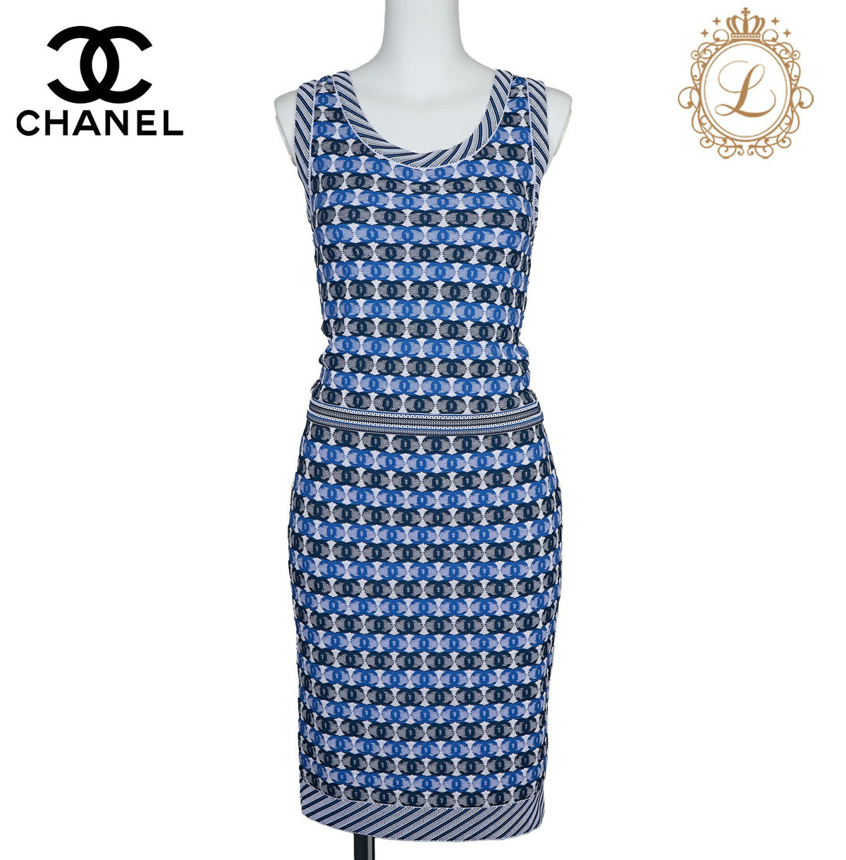 Pre-Owned Set Up Ensemble, Coco Mark CC Jacquard, Cotton Blend, Blue, Silver-Tone Hardware, Pre-Owned