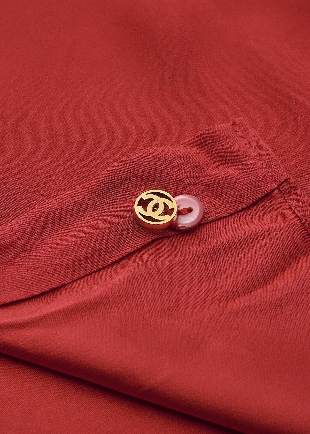 Elevate your wardrobe with the exquisite CHANEL Coco Mark Coco Button Blouse Shirt, a stunning long sleeve top that blends timeless elegance with modern style. This coveted piece, crafted by the iconic brand CHANEL, is available in a vibrant red hue that exudes confidence and charm.