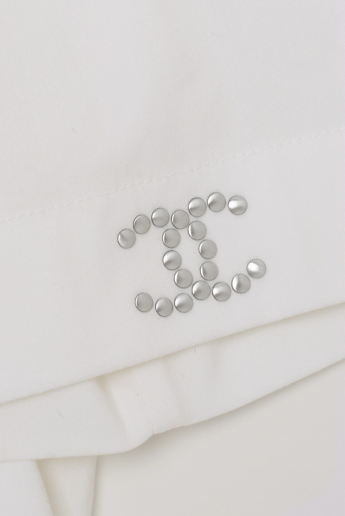 Pre-Owned Short Sleeve Shirt Blouse T-Shirt, Coco Mark, Cotton Blend, White, Silver-Tone Hardware, Pre-Owned