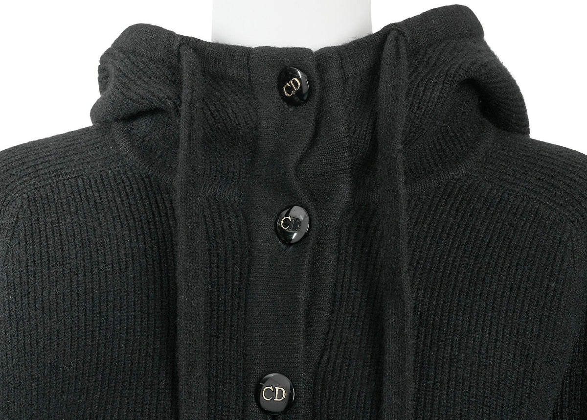 Elevate your wardrobe with the Dior Dior Gilogo Button Hooded Cardigan Knit Outer Hoodie Jacket, a stunning piece perfect for the stylish woman who values both comfort and luxury. This Size M black cardigan combines the renowned Dior branding with a cozy silhouette, making it an essential addition to your collection.