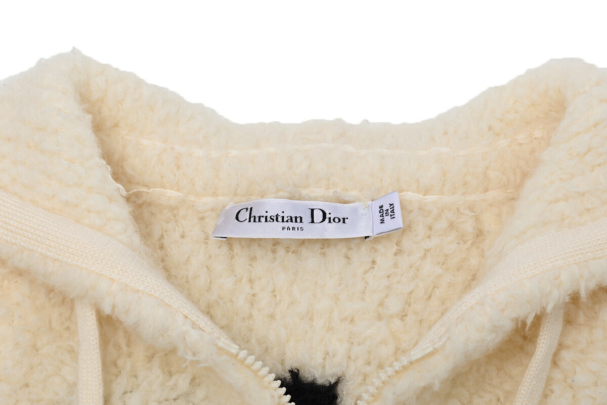 Elevate your wardrobe with the exquisite Dior Dior J'ADIOR 8 Jadiol Logo Hoodie Knit Top. This stunning piece, crafted in a sophisticated Ivory and Black color scheme, is perfect for fashion enthusiasts seeking a blend of comfort and style.