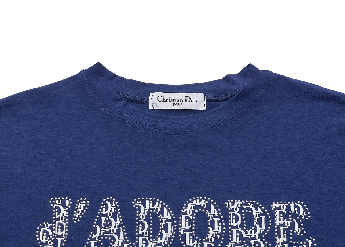 Elevate your casual wardrobe with the stunning Dior J'adore Logo T-shirt. This exquisite short-sleeve cut-and-sew top boasts a luxurious blend of 80% polyester and 20% spandex, ensuring both comfort and stretch for a flattering fit. The unique navy blue and white color scheme is perfect for effortless styling, making it an essential addition to any fashion-forward woman's collection.