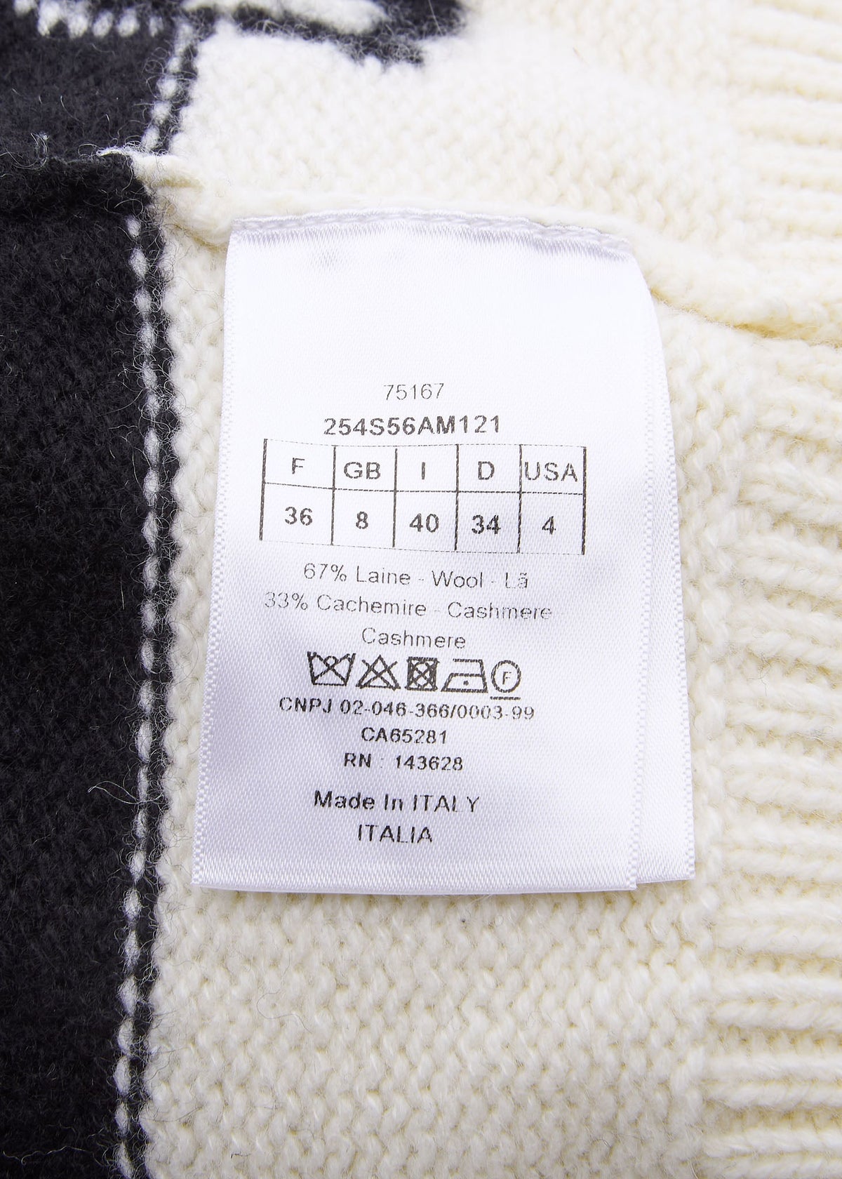 Elevate your wardrobe with the exquisite Dior Knit Hoodie 40 Ivory & Black—a stunning blend of luxury and style. Crafted with precision from a premium mix of 67% wool and 33% cashmere, this hoodie offers unparalleled comfort and warmth while maintaining a chic appearance.