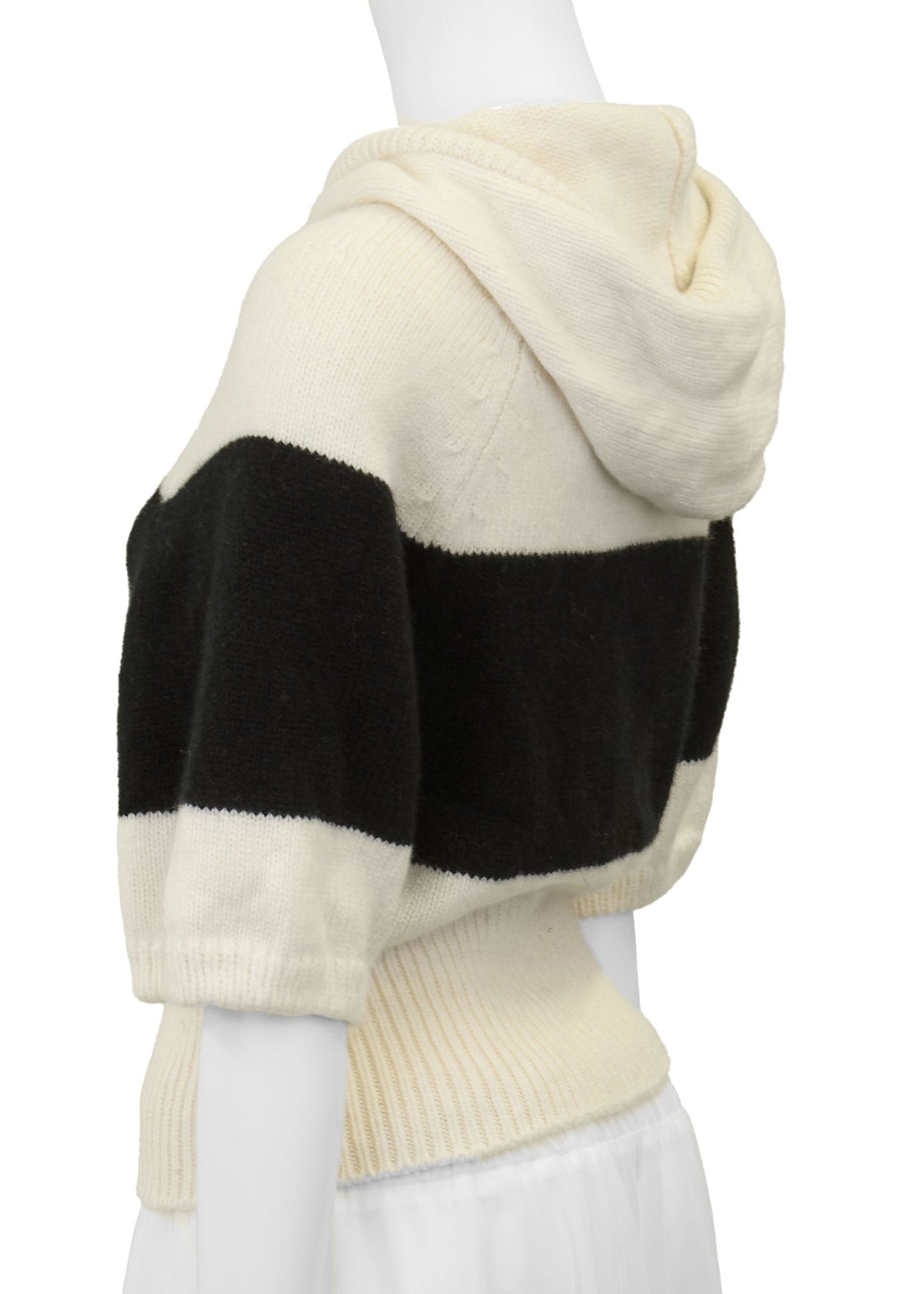 Designed for versatility, the hoodie features a modern cut and sew style, making it perfect for both casual outings and sophisticated gatherings. Its elegant ivory and black colorway effortlessly complements any outfit, ensuring you look your best in every situation.
