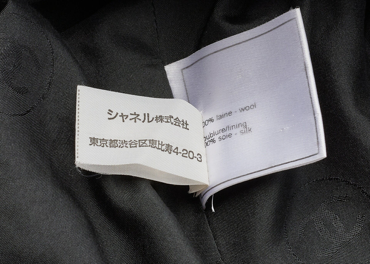 Elevate your wardrobe with this stunning CHANEL Logo Button Logo Jacket Outerwear Coat Long Sleeve Tops 38 Black Brand Apparel. Crafted from 100% premium wool, this jacket is not only a fashion statement but also a testament to CHANEL's timeless elegance and quality.