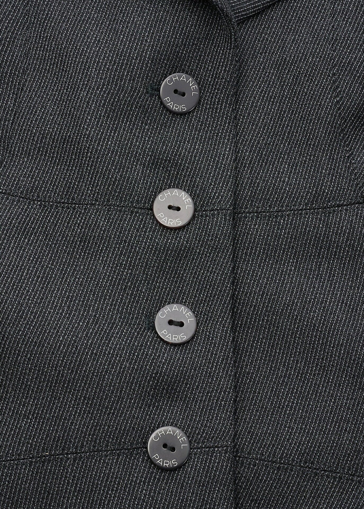 - Iconic Design: Features CHANEL's signature logo buttons, adding a luxurious flair to your attire