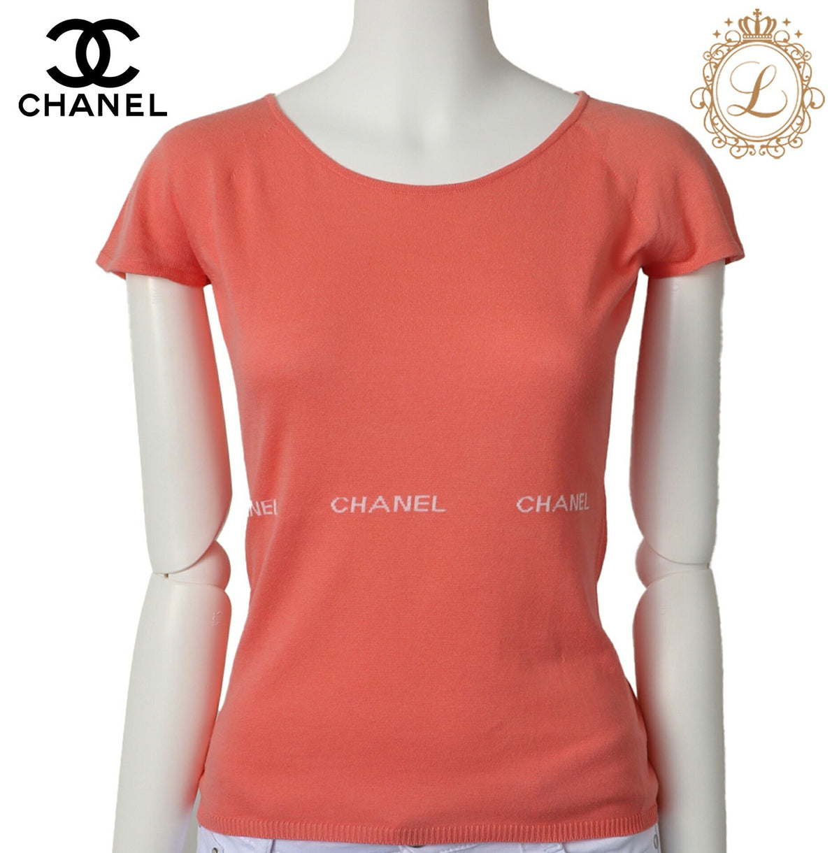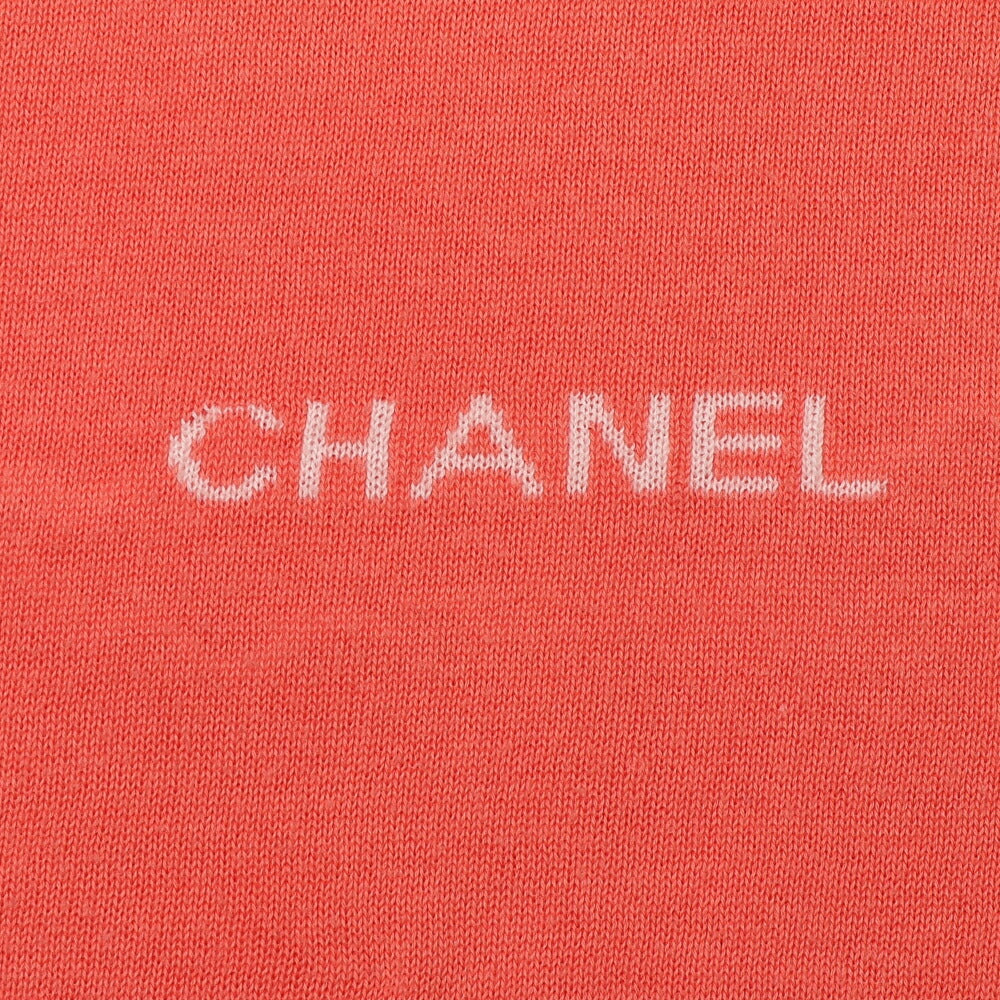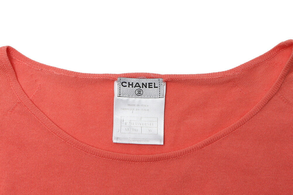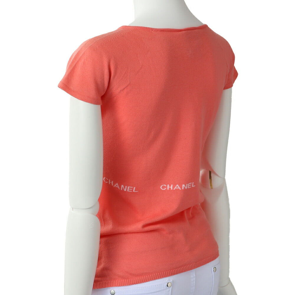 Elevate your wardrobe with the CHANEL Chanel Logo Mark Knit Short Sleeve T-shirt Tops Cut and Sew 36 Salmon Pink. This exquisite piece combines luxury and comfort, perfect for the fashion-forward individual who appreciates the finer things in life.