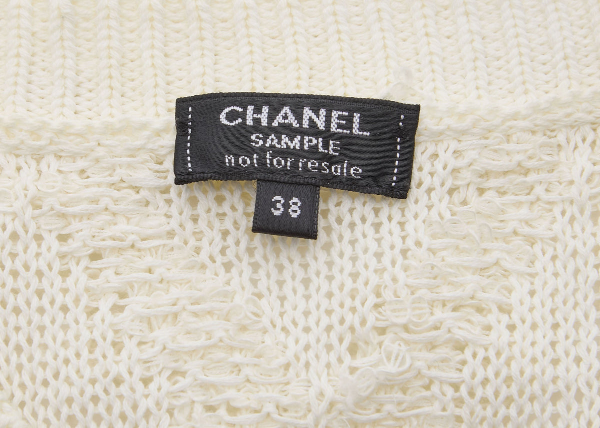 Step into timeless elegance with the CHANEL Chanel No5 Knitted Vest 38 Ivory Tops Camisole Sleeveless T-Shirt Brand Apparel. This exquisite vest, crafted from a luxurious blend of 56% cotton, 32% hemp, and 11% polyamide, offers both comfort and sophistication, perfect for any occasion.