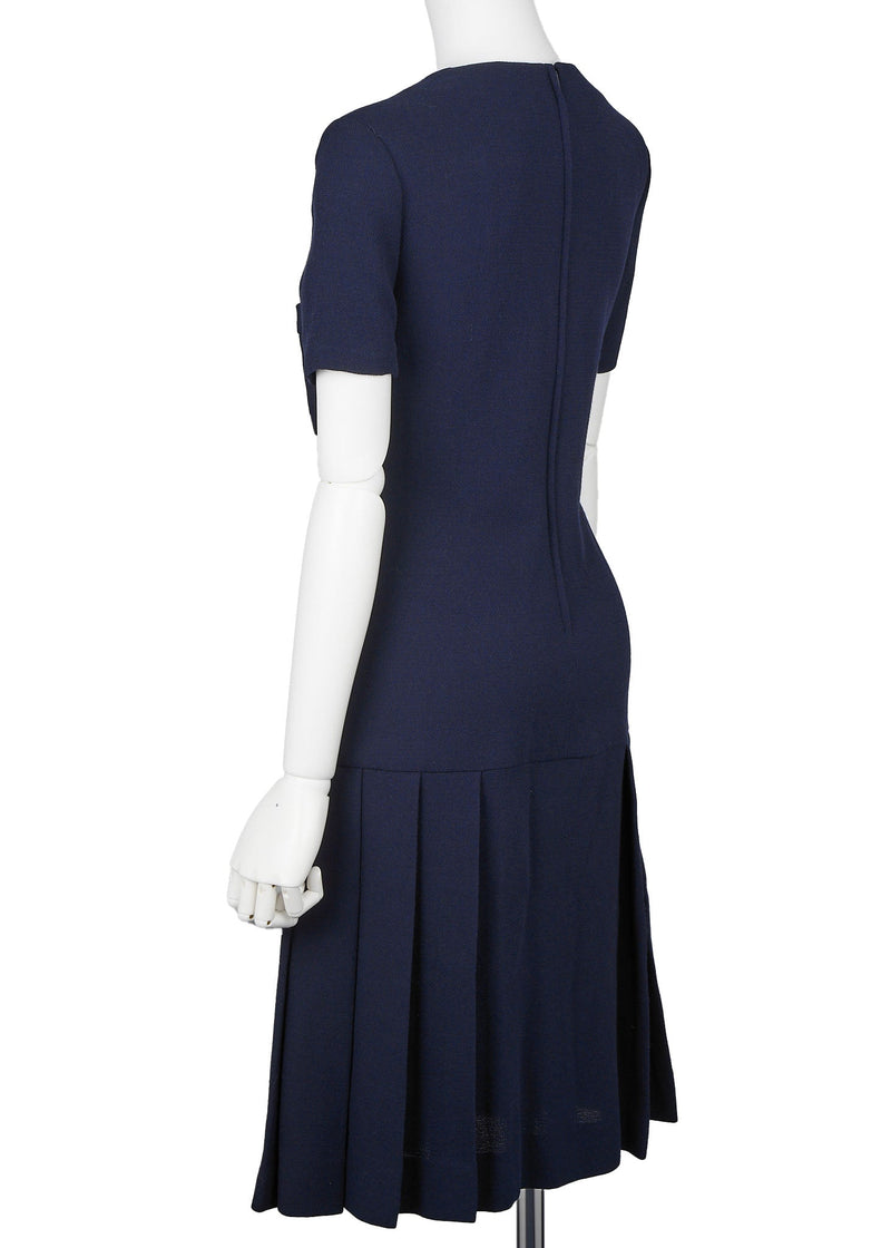 Pre-Owned Dress, Coco Button Pleated, Wool, Navy, Gold-Tone Hardware, Pre-Owned