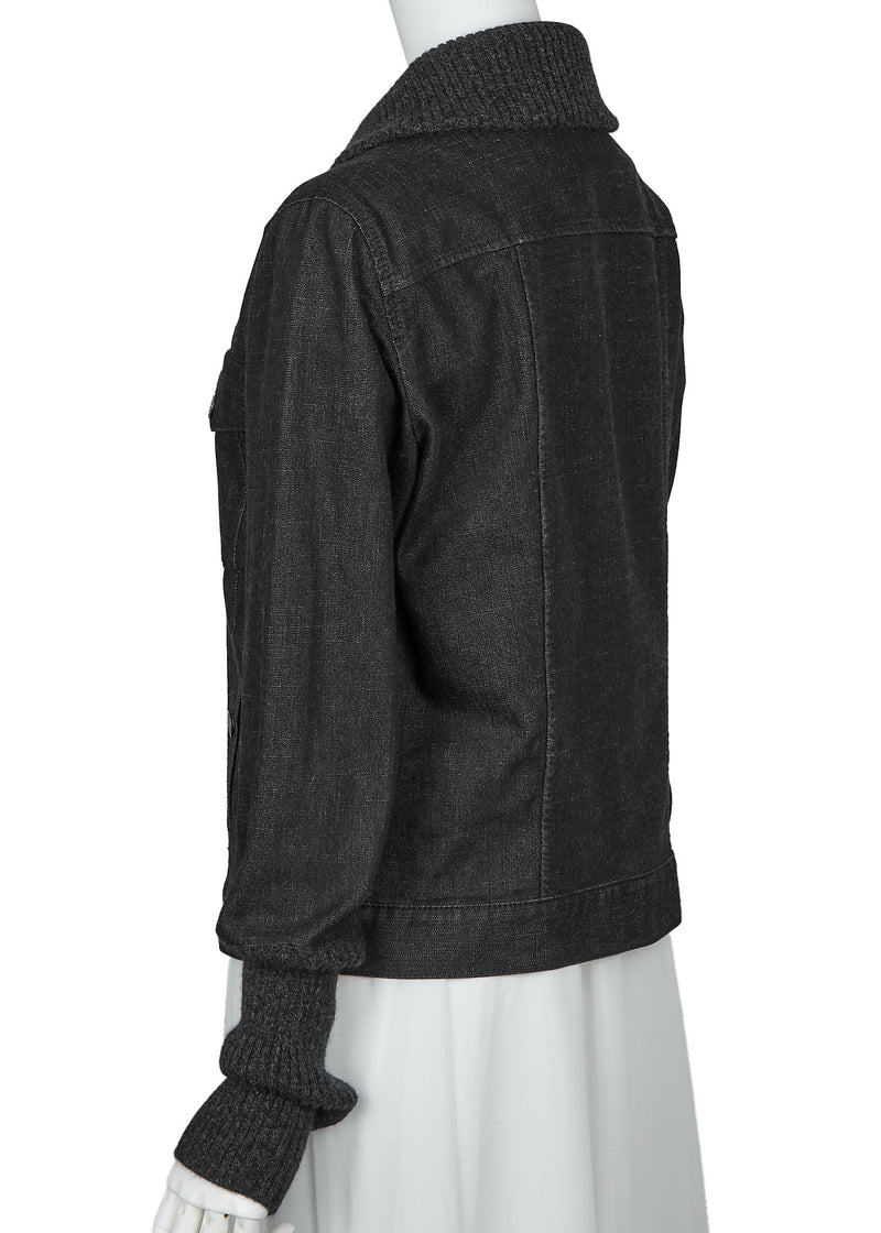 Pre-Owned Jacket, Knit Denim, Coco Button, Cotton Blend, Black, Silver-Tone Hardware, Pre-Owned