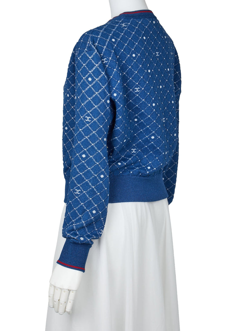Pre-Owned Knit Sweater, Coco Mark, Matelasse, Cotton Blend, Blue, Pre-Owned