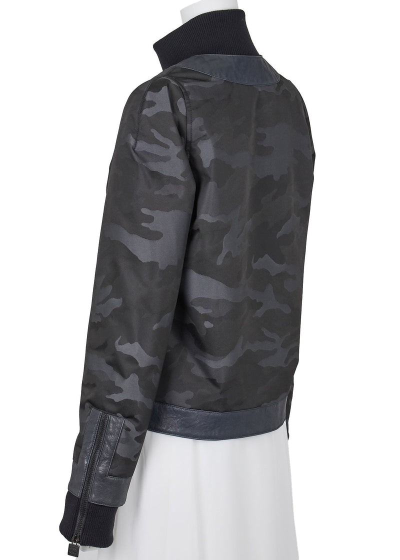 Pre-Owned Sports Line Camouflage Jacket Blouson, Long Sleeve, Polyester Blend, Black, Silver-Tone Hardware, Pre-Owned