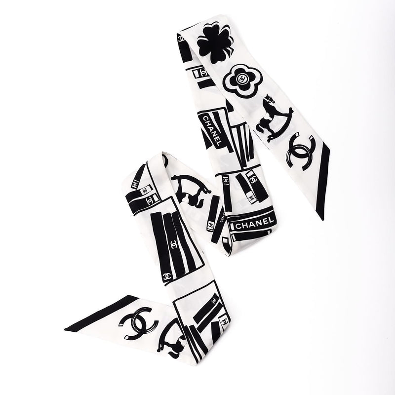 Pre-Owned Scarf Coco Mark Silk Black Gold-Tone Hardware Pre-Owned