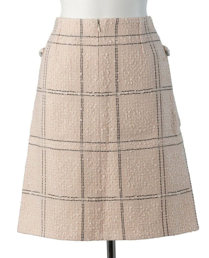 Pre-Owned Skirt, Coco Button, Tweed, Wool, Pink, Silver-Tone Hardware, Pre-Owned