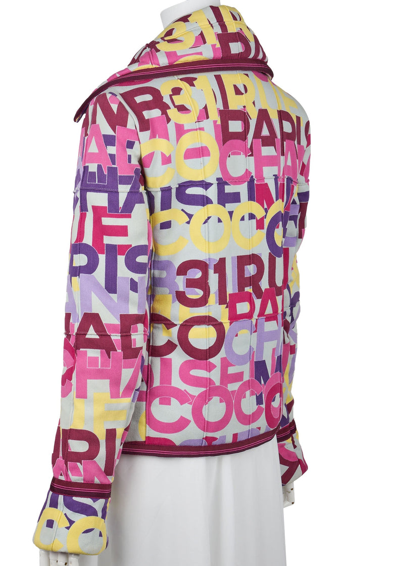 Pre-Owned Down Jacket, Long Sleeve, Cotton Blend, Multicolor, Silver-Tone Hardware, Pre-Owned