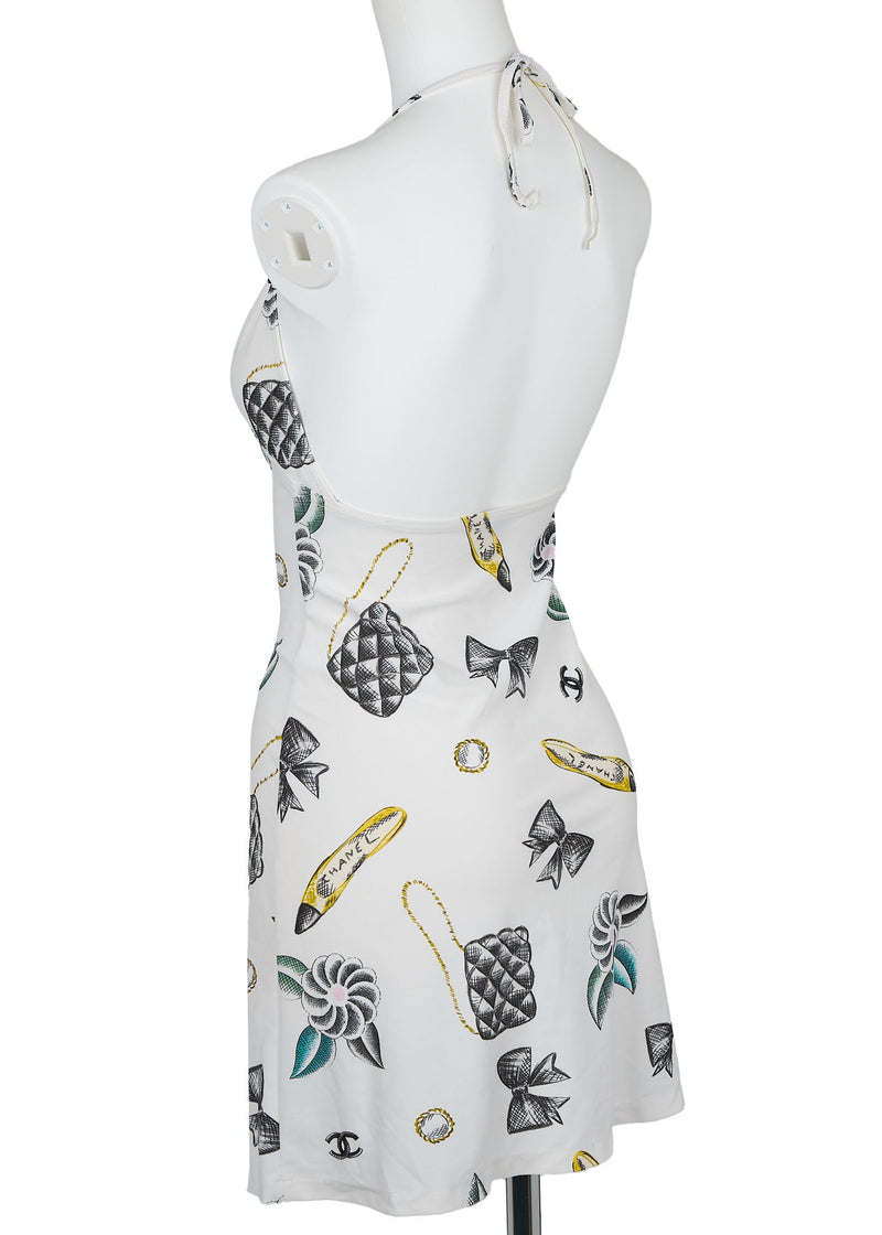 Pre-Owned Camisole Dress, Coco Mark, Nylon Spandex, White, Gold-Tone Hardware, Pre-Owned