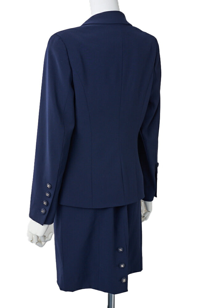 Pre-Owned Jacket Skirt Set, Coco Button, Wool, Navy, Gold-Tone Hardware, Pre-Owned