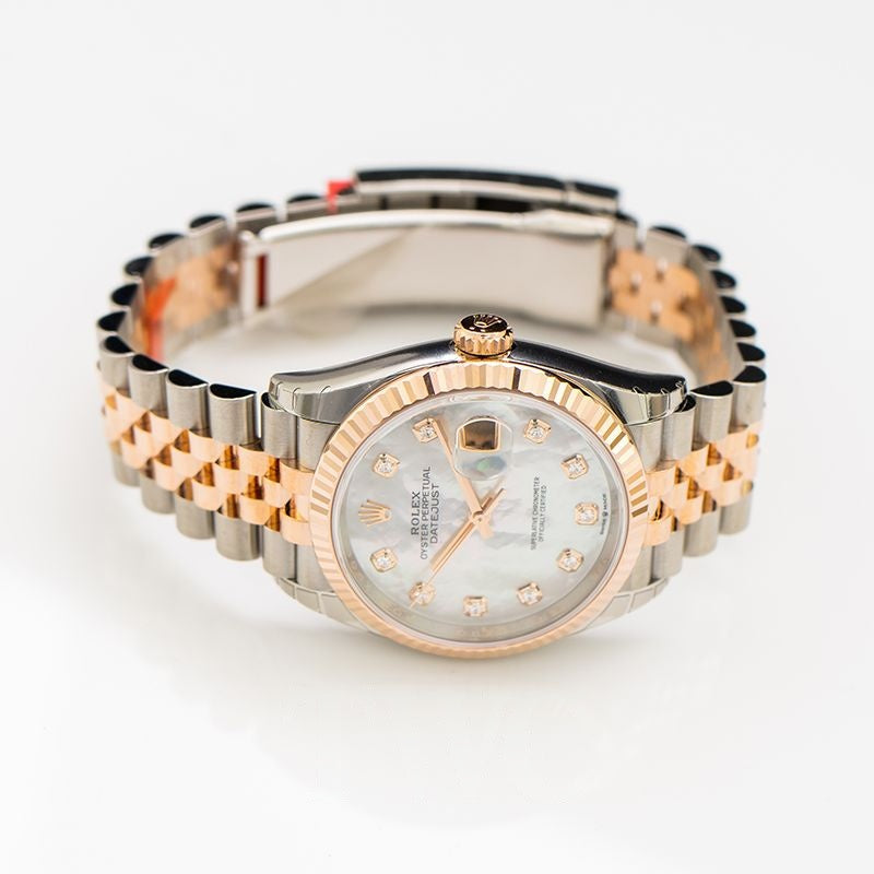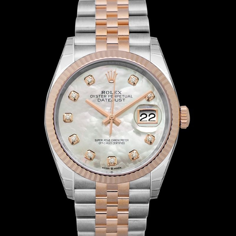 Datejust 36 mm White mother-of-pearl set with diamonds Dial in Stainless Steel, Everose Gold 126231-0021