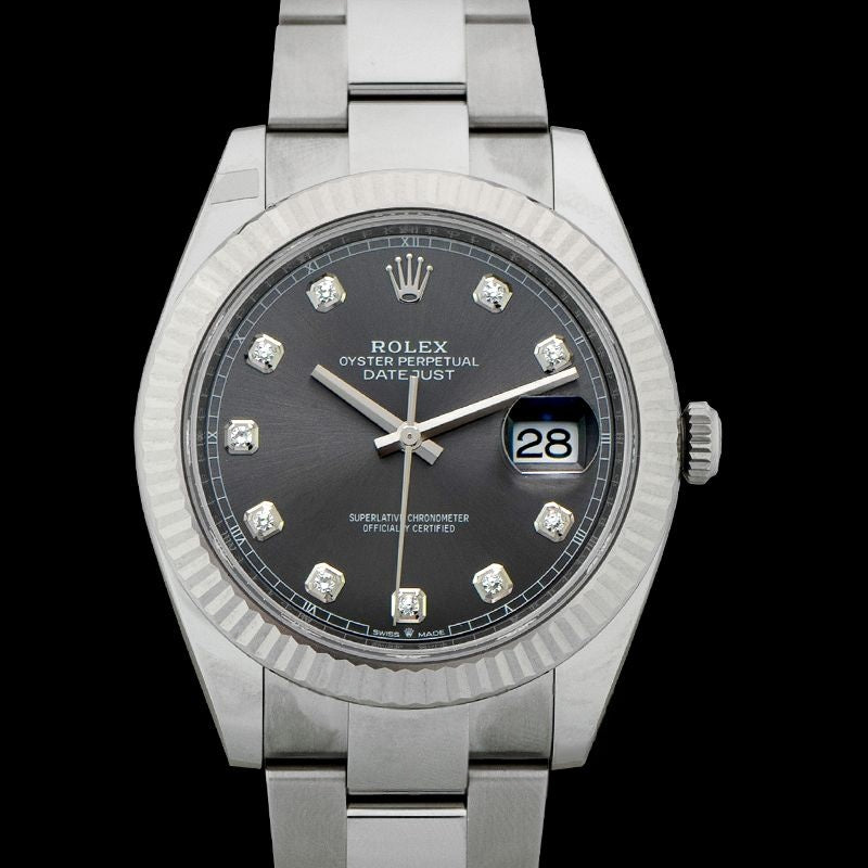 Datejust 41 mm Grey Dial in Stainless Steel, White Gold 126334-Rhodium-G-Oyster