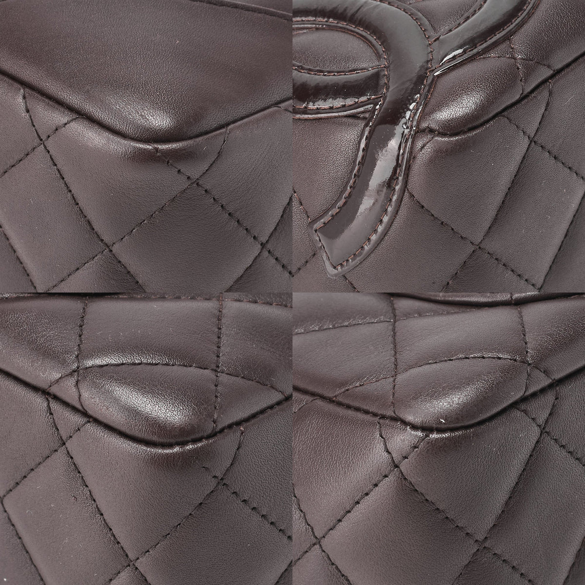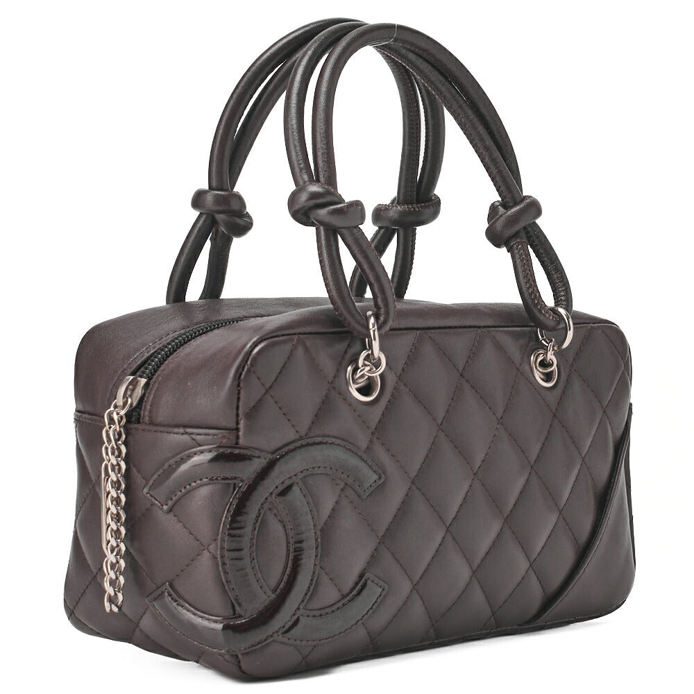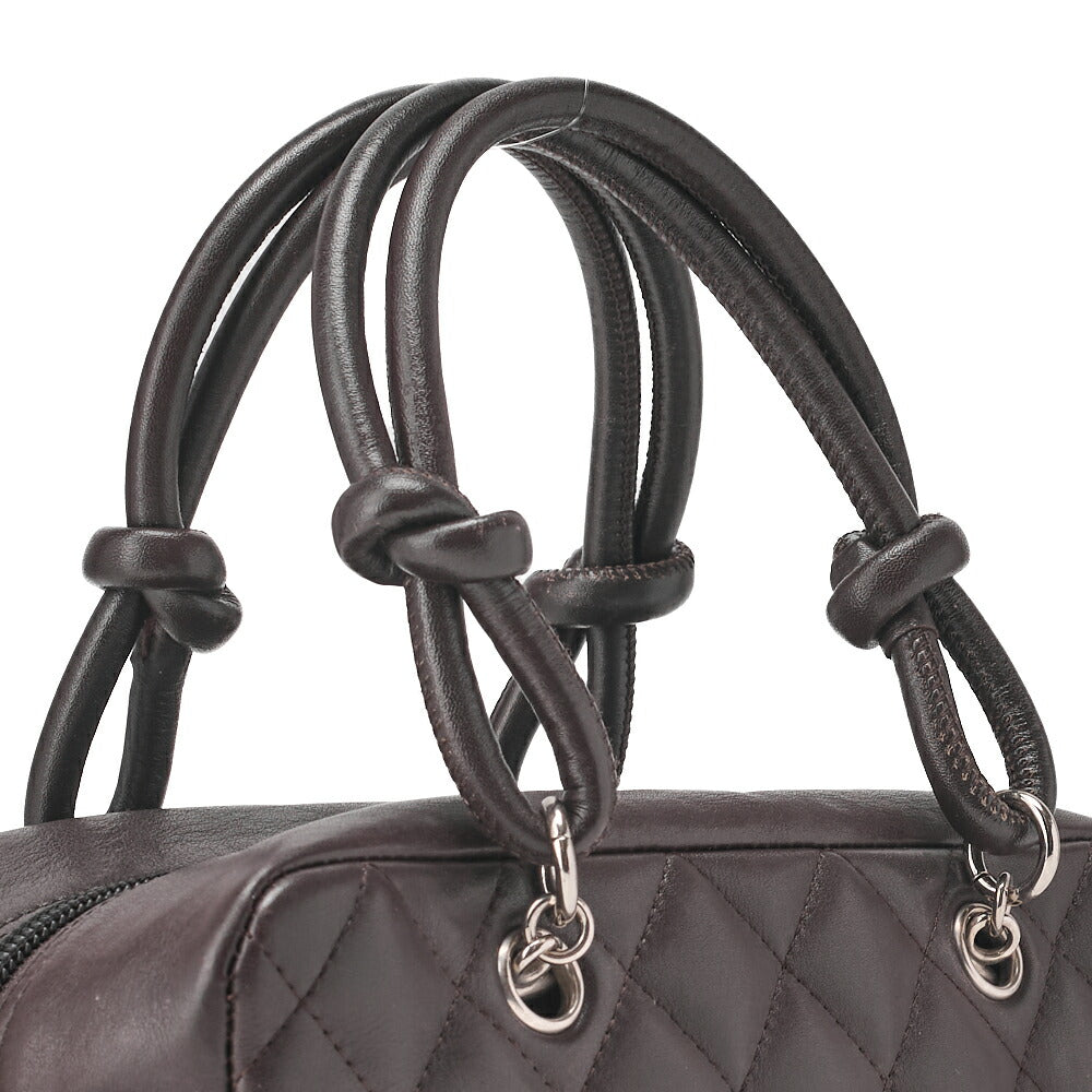 Wir präsentieren die CHANEL Cambon Line Mini-Tragetasche aus Kalbsleder und Emaille in einem atemberaubenden Braunton, sorgfältig gefertigt für die moderne Frau. Diese exquisite Tragetasche mit silbernen Beschlägen besticht durch ein elegantes Design, das Luxus und Funktionalität mühelos vereint. Mit den Maßen ca. 21 cm (B x H x T) x 9 cm ist dieses schicke Accessoire perfekt für jeden Anlass und ein Must-have für Ihre Handtaschensammlung.