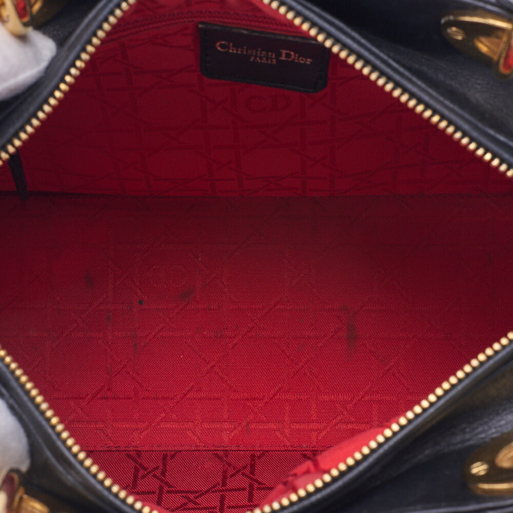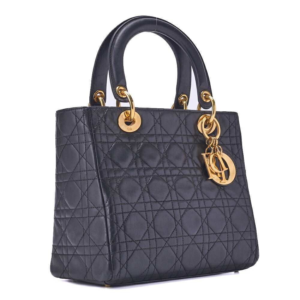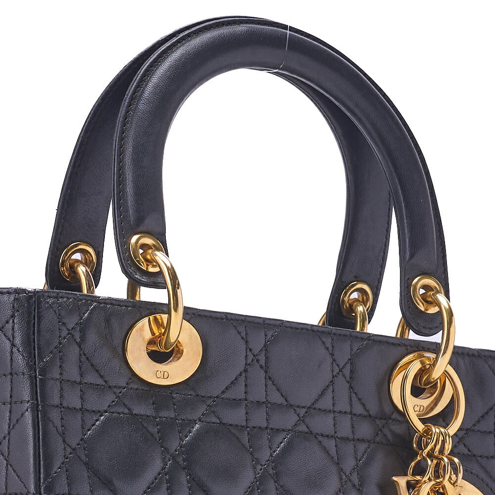 Erweitern Sie Ihre Accessoire-Auswahl mit der Dior Lady Dior Cannage Handtasche aus luxuriösem Lammleder in edlem Schwarz. Dieses zeitlose Stück ist mit eleganten Goldbeschlägen verziert und präsentiert die perfekte Kombination aus Stil und Funktionalität.