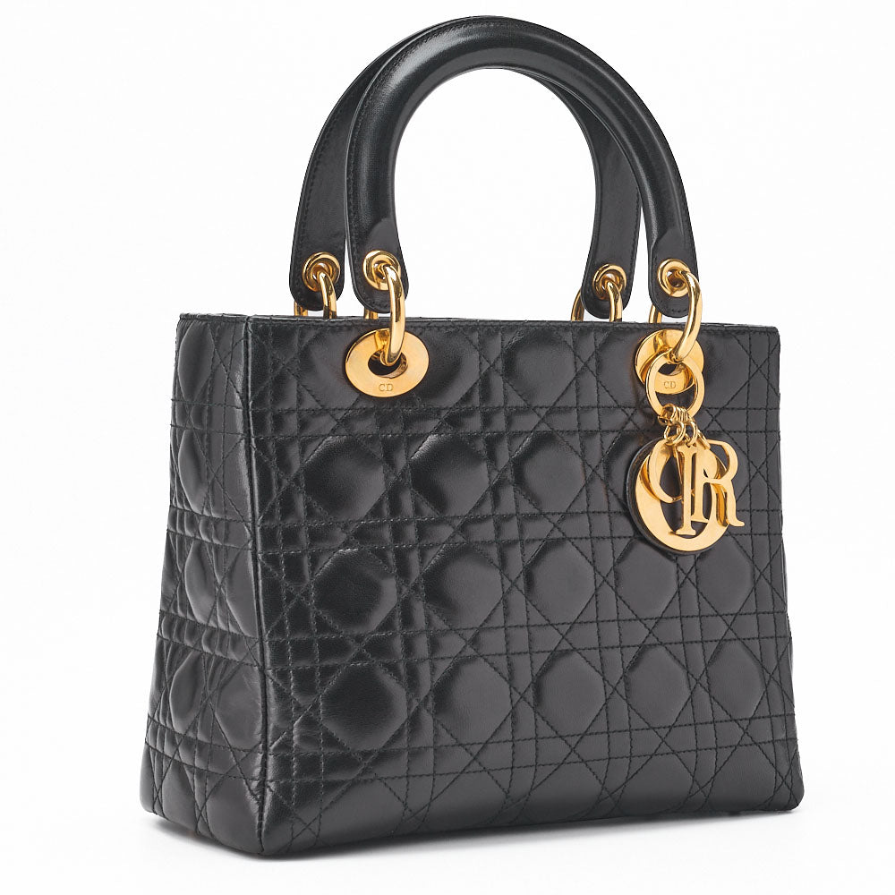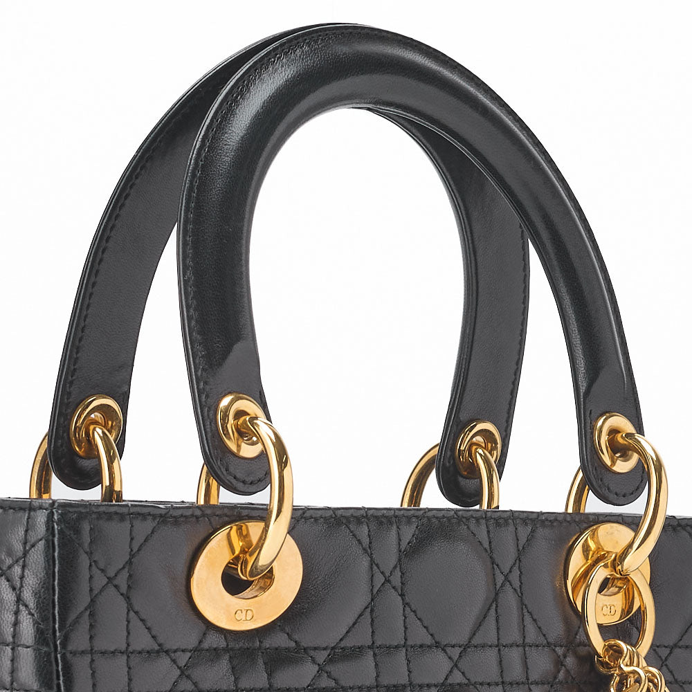 Erleben Sie die zeitlose Eleganz der Dior Lady Dior Cannage Handtasche aus schwarzem Lammleder (Goldbeschläge) , eine atemberaubende Ergänzung für jede Damenkollektion. Diese exquisite Handtasche vereint Luxus mit Funktionalität und ist das perfekte Accessoire für legere und formelle Anlässe.