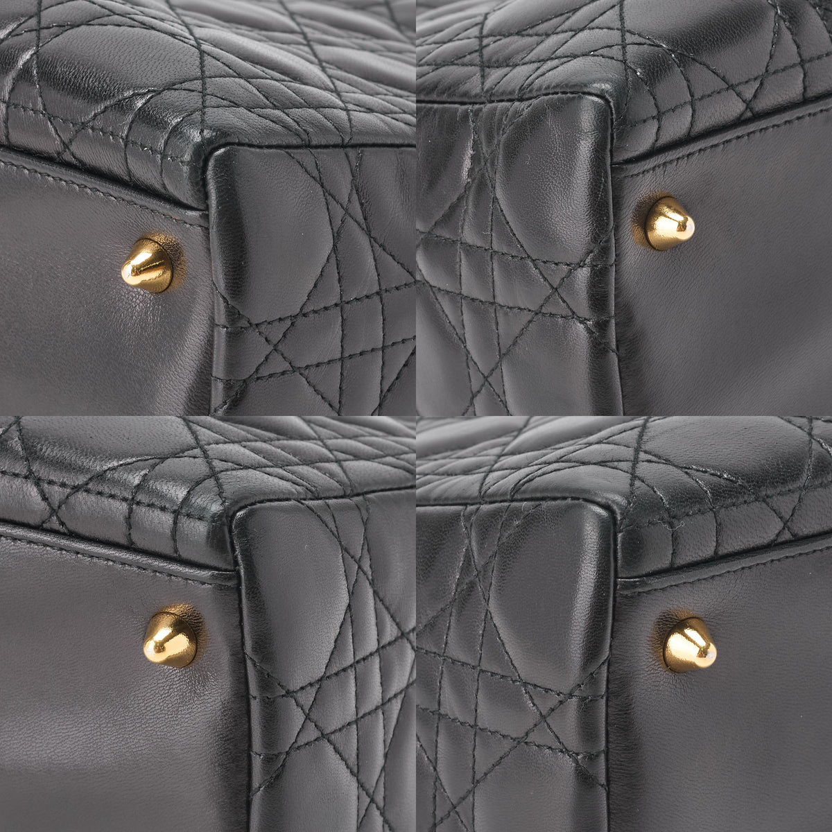 Gebrauchte Damenhandtasche Cannage Lammleder Schwarz Goldfarbene Hardware Gebraucht