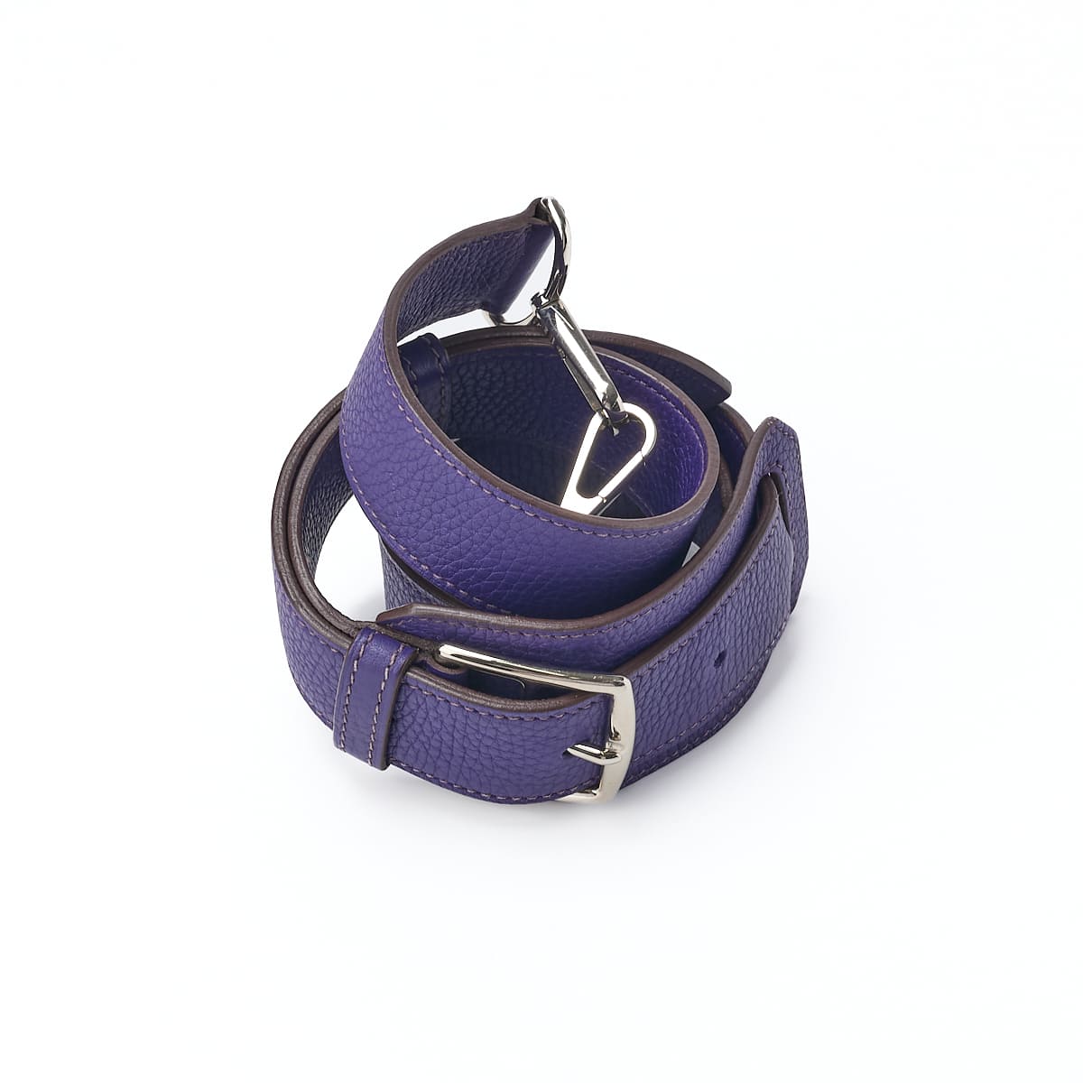 - Farbe: Auffälliges Ultraviolett mit silbernen Metallbeschlägen