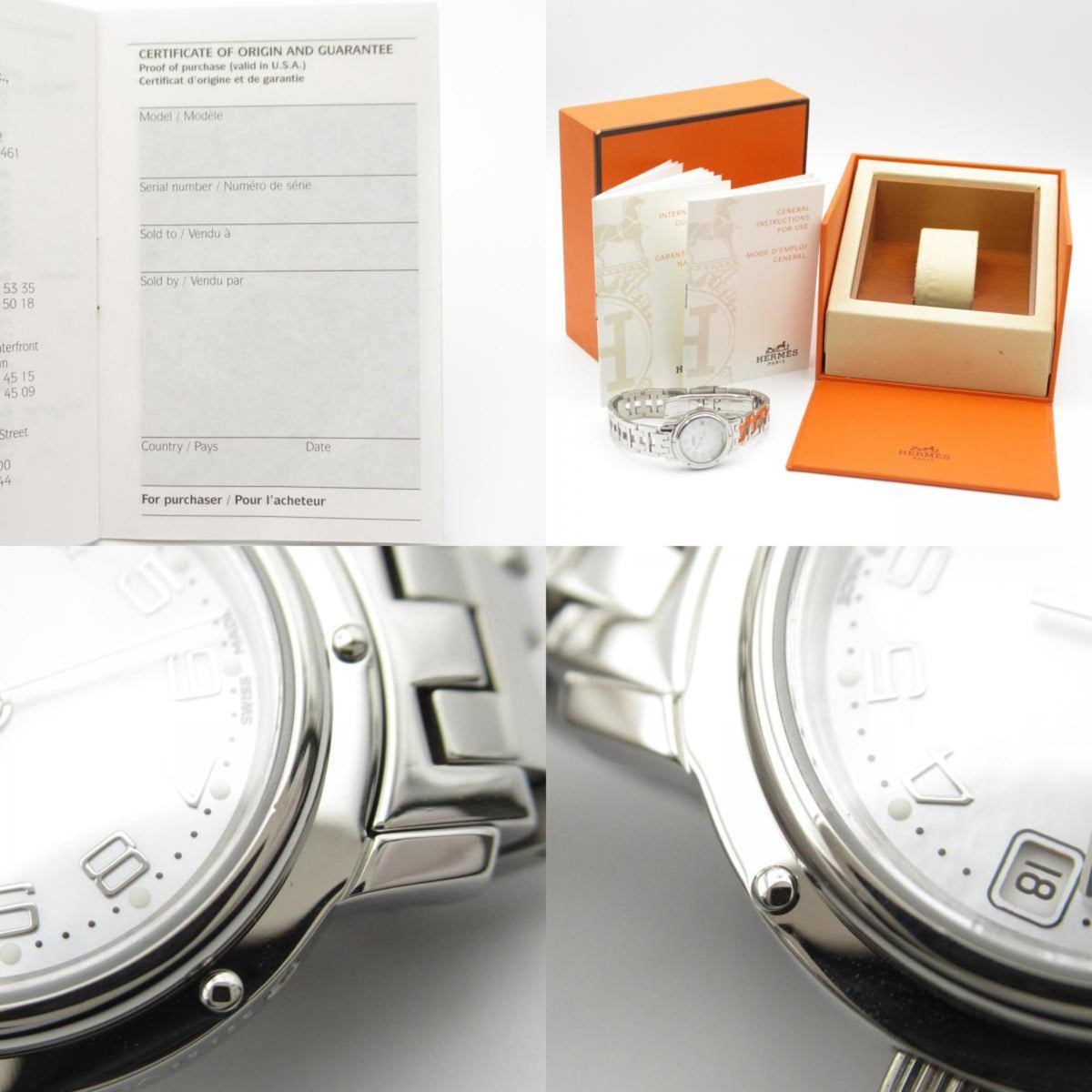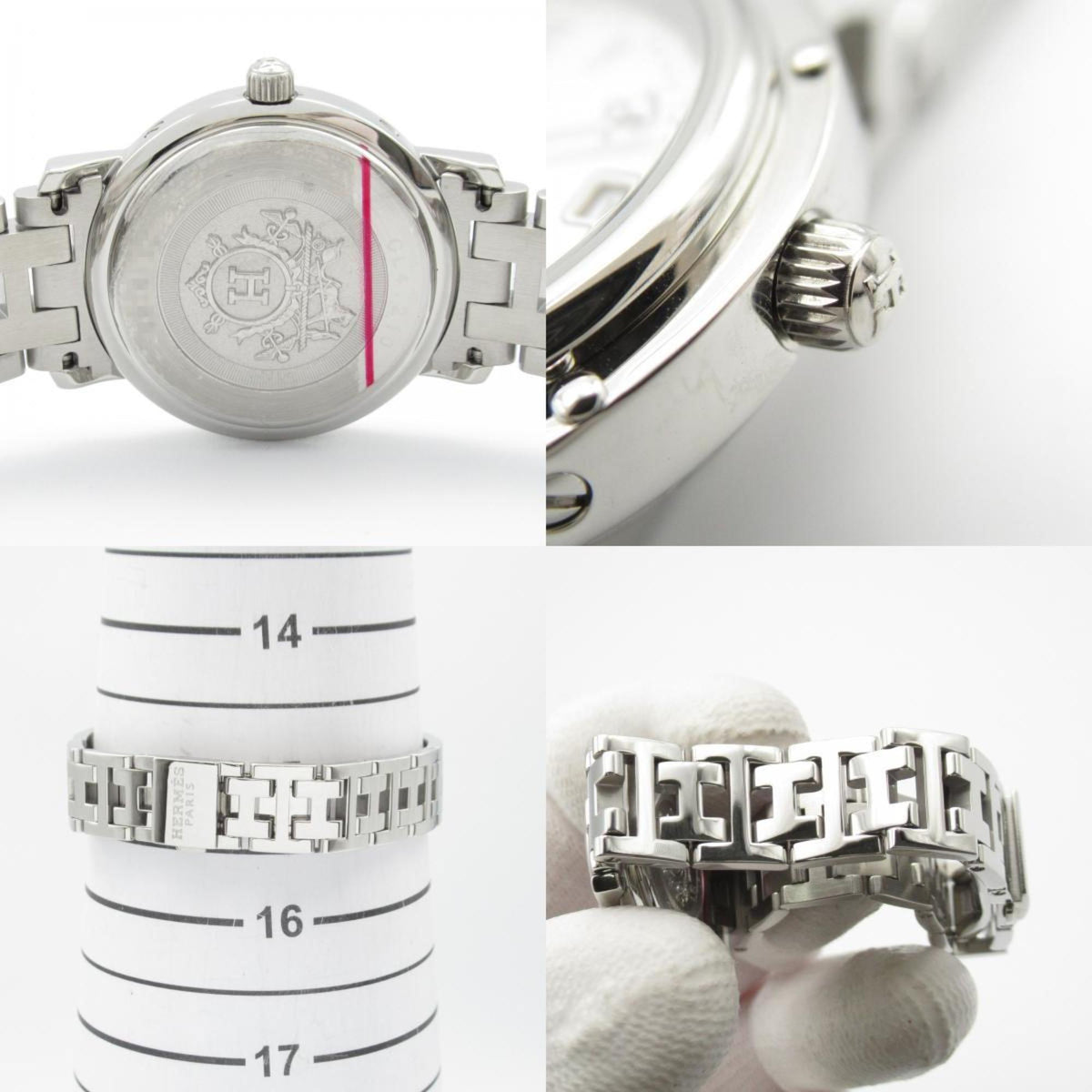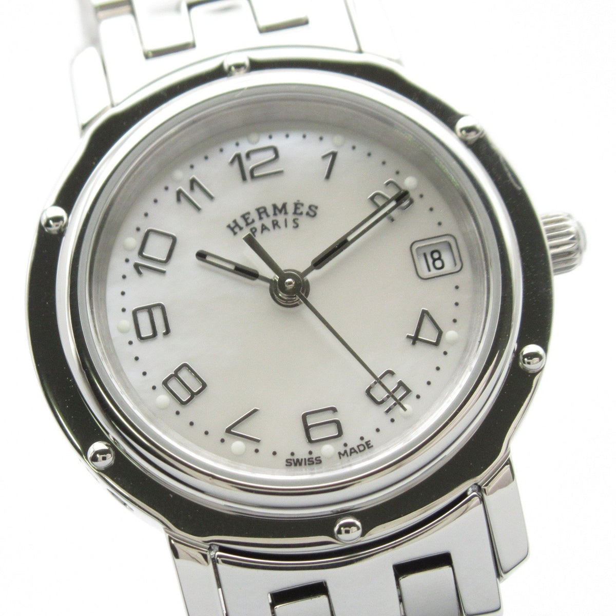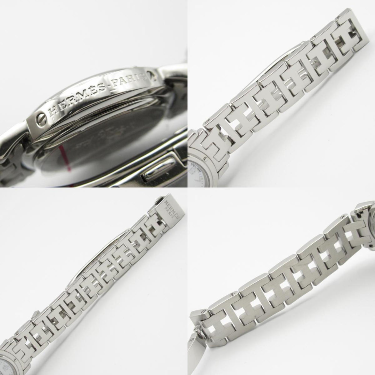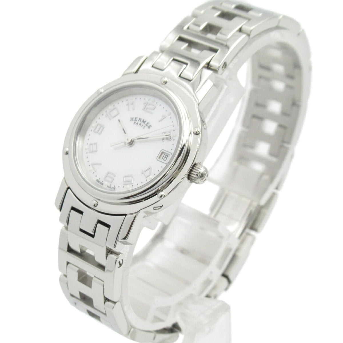 Gebrauchte Hermes Clipper Nacle Uhr Edelstahl Damen Weißes Gehäuse CL4.210