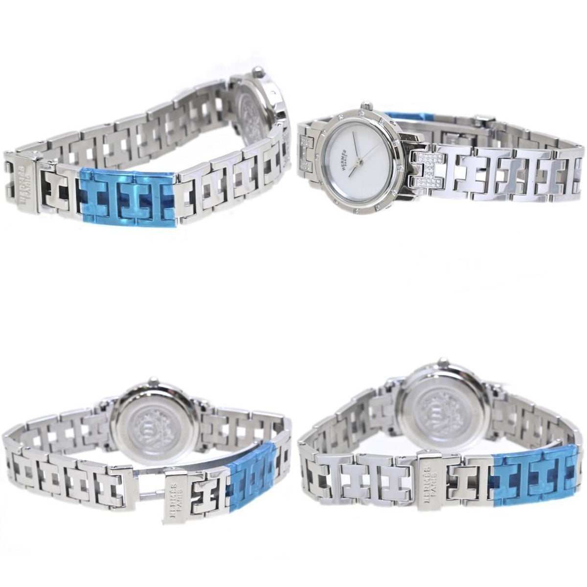 Pre-Owned HERMES Clipper Nakreh (old buckle) women's watch CL4.230.215 3869 with 12 diamond bezel and bracelet in stainless steel (40047)