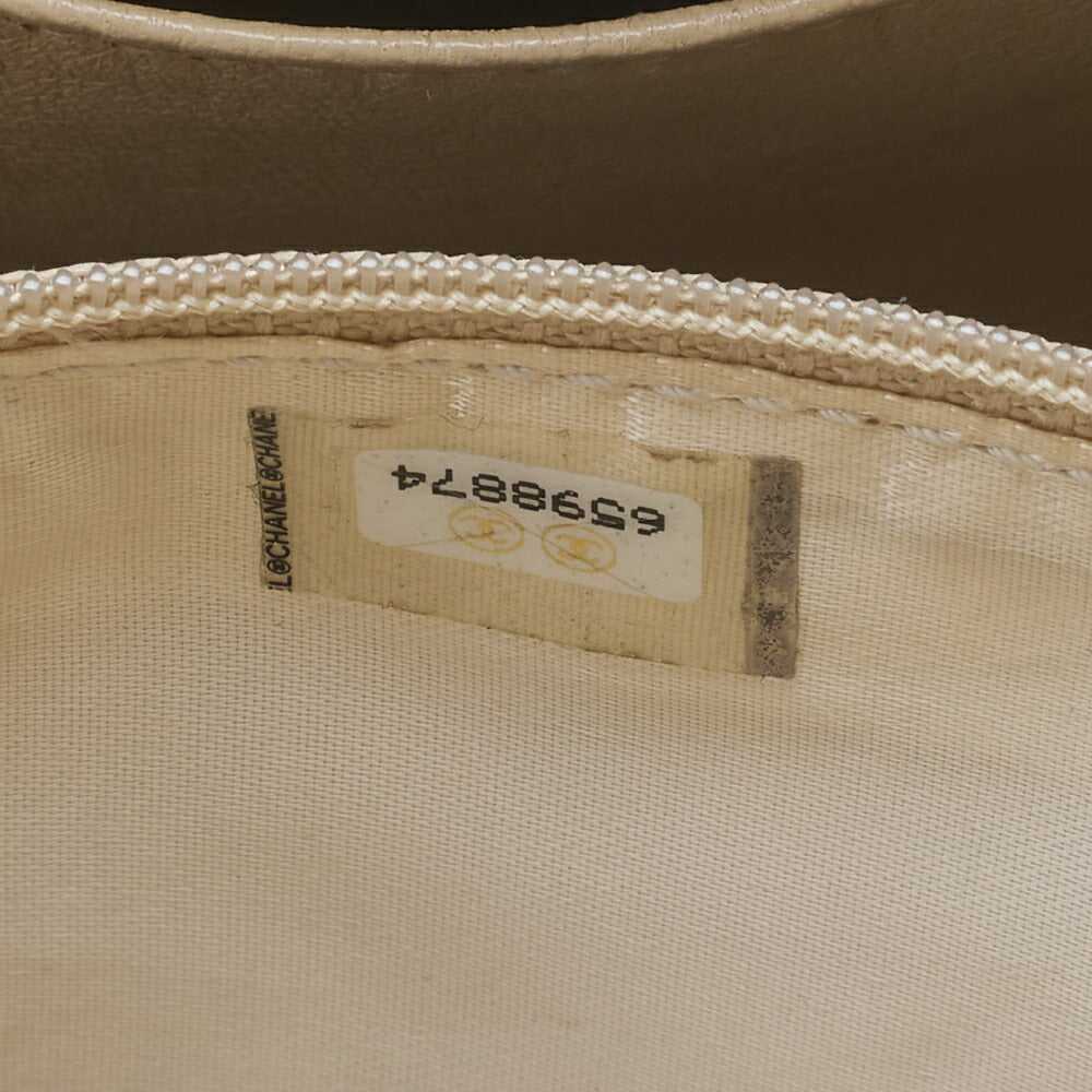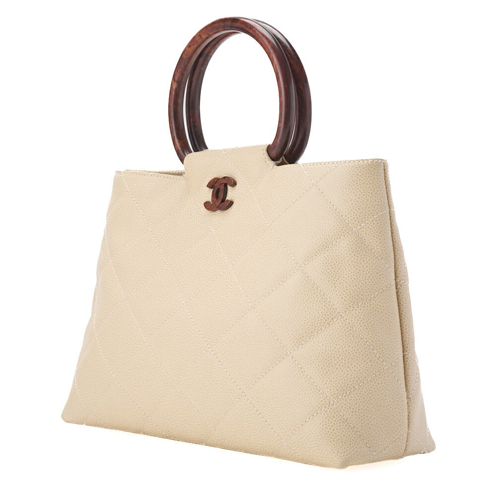 Gebrauchte Handtasche, Matelassé Coco Mark Holzmuster, Kaviarhaut, Beige, goldfarbene Metallteile, gebraucht