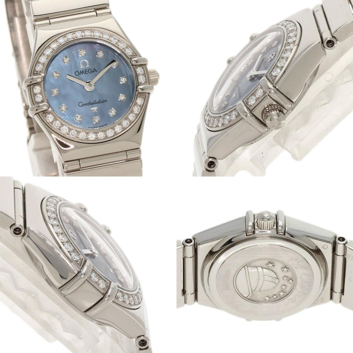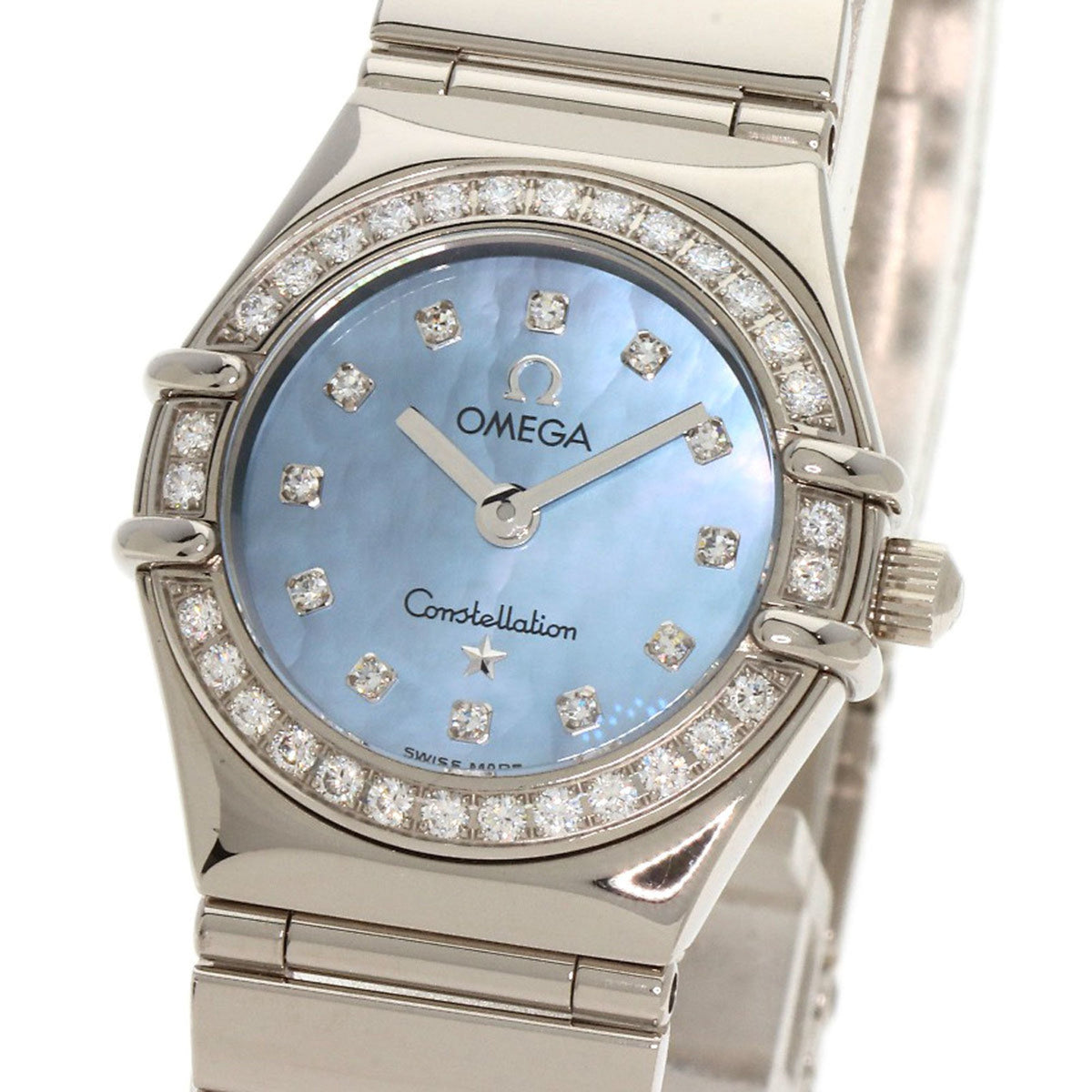 Gebrauchte OMEGA 1165.77 Constellation Mini Diamond Blue Shell Uhr 18K Weißgold 18KWG Damen