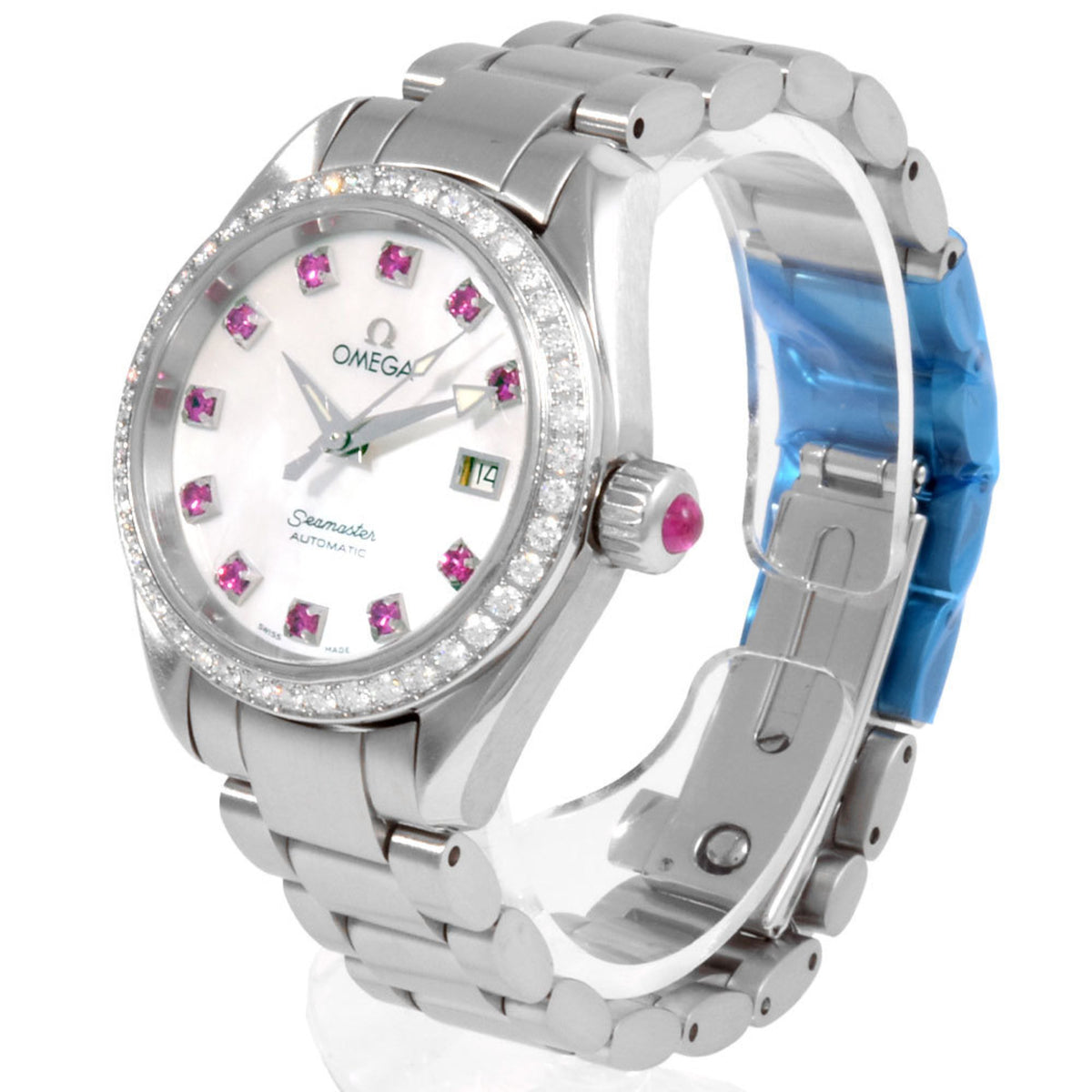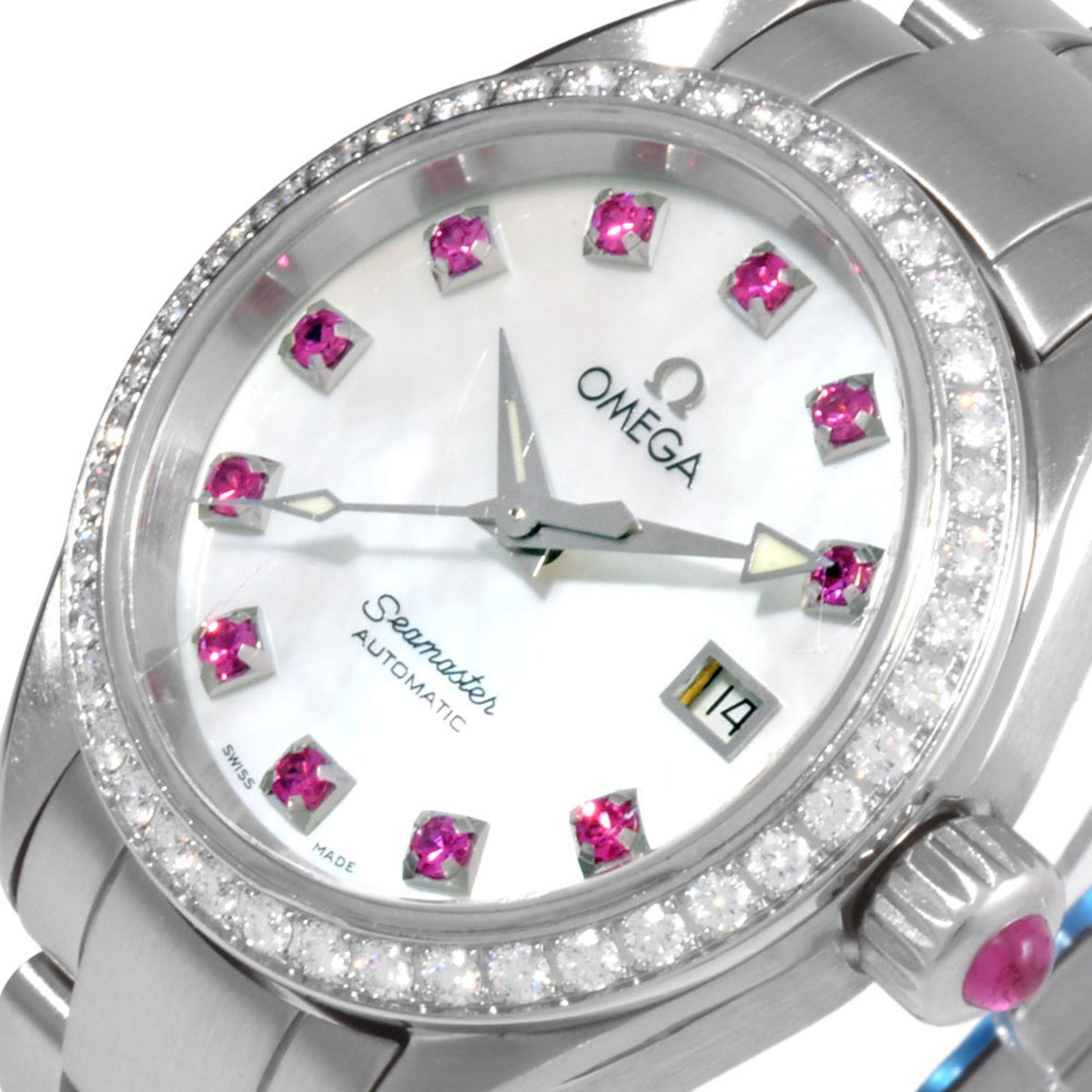 Gebrauchte OMEGA 2565.78 Seamaster Aqua Terra Automatikuhr Weißes Muschelzifferblatt Diamantlünette Damen
