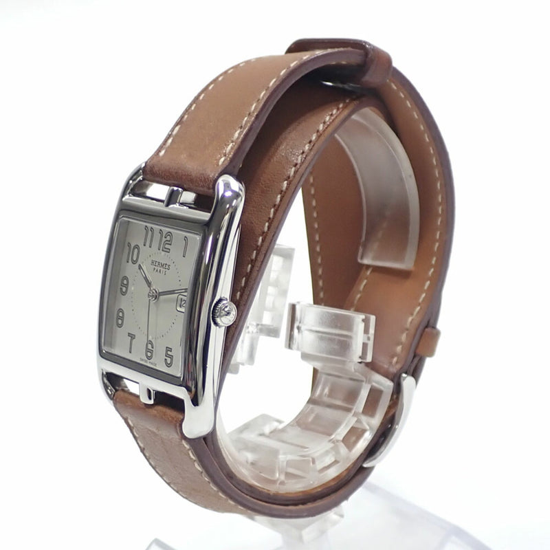 Pre-Owned Herm?s Cape Cod Double Tour Women's Quartz Watch, Stainless Steel with Leather Strap, CC2.710, Battery-Operated, Brown, C2214833