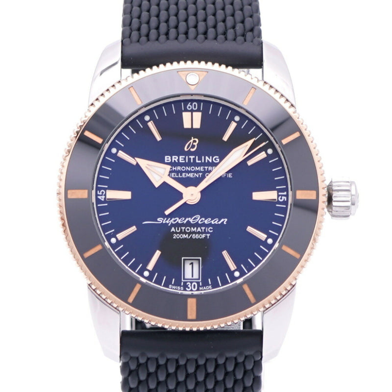 Pre-Owned Like new Breitling Superocean Heritage B20 UB2010 automatic watch in stainless steel/rubber with gold-plated case and black dial (0174BREITLING) for men.